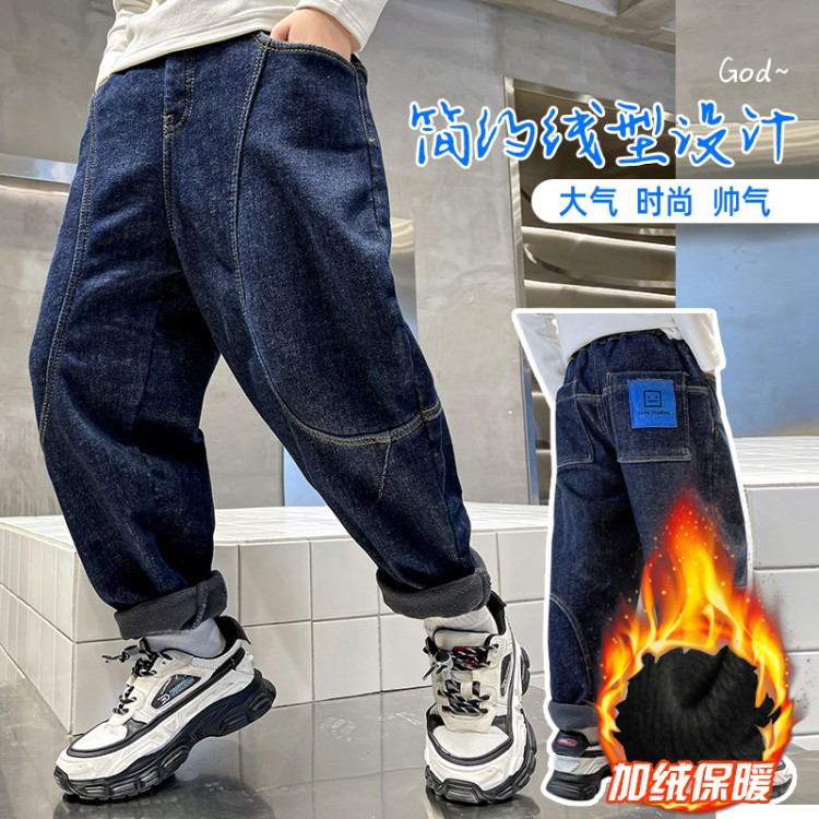 极速童装男童牛仔裤2021新款秋A冬款加绒加厚儿童裤子一体绒男孩