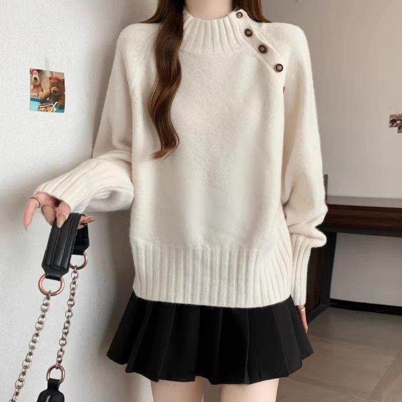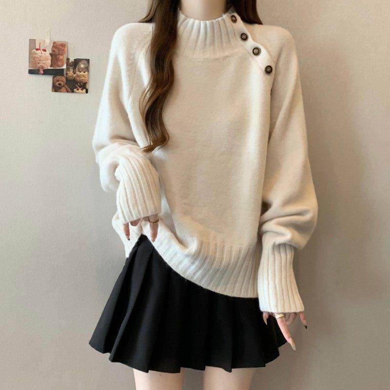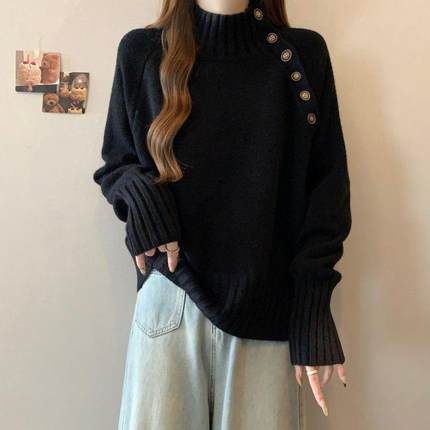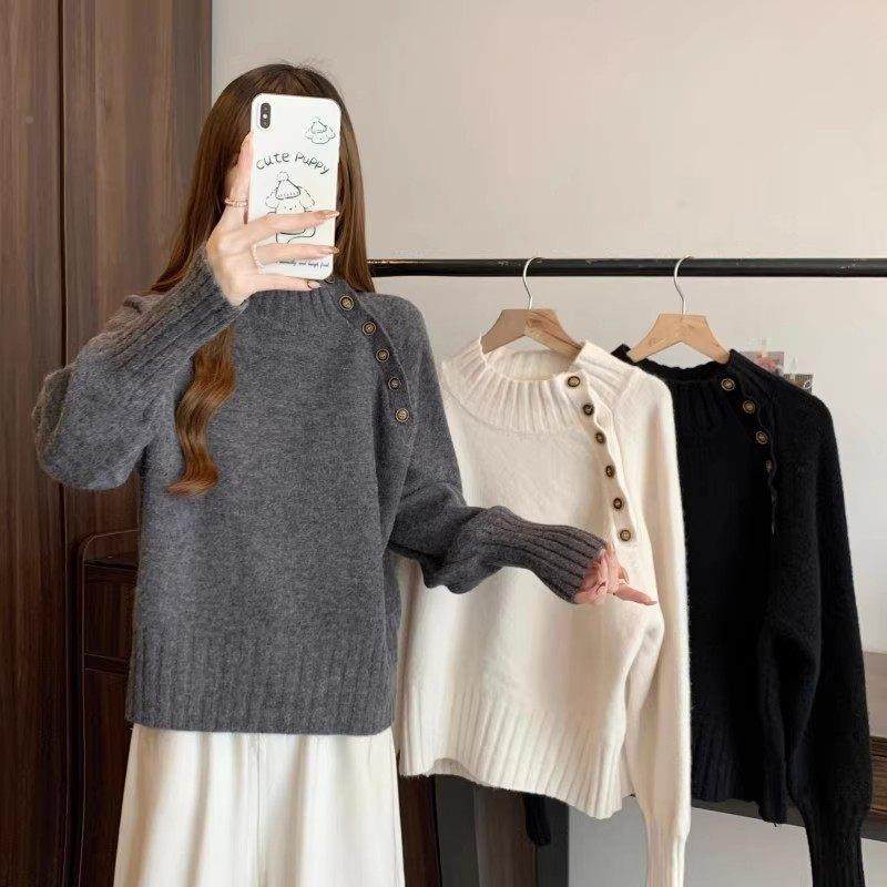 2025秋冬新款高领懒灰色毛衣衣大码女装胖半mm宽上ANR松慵加厚针