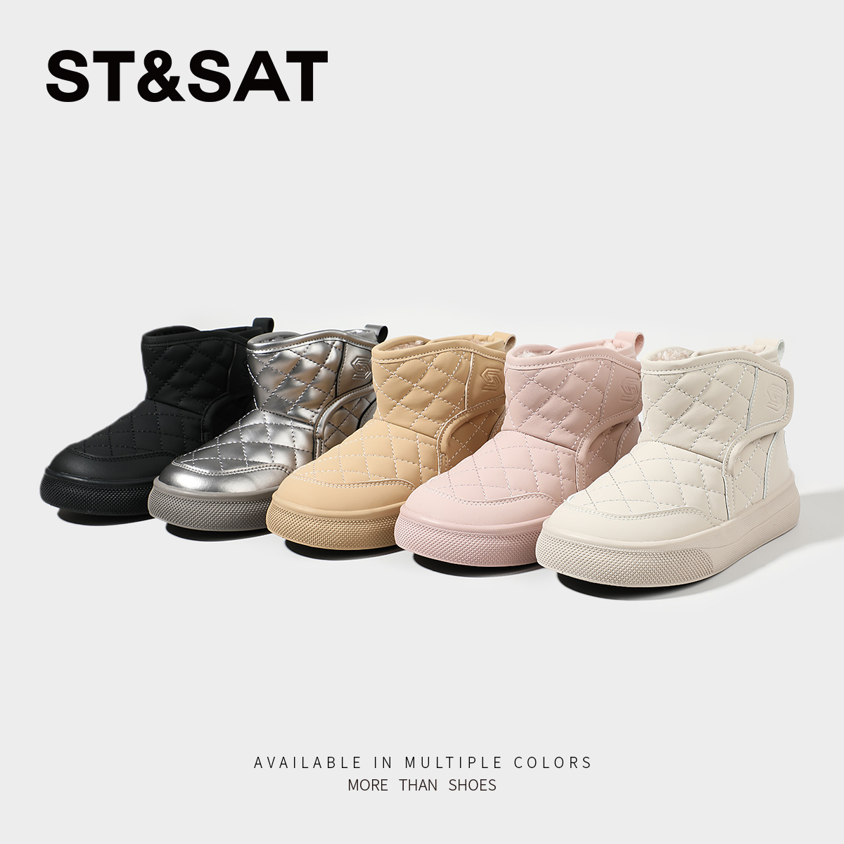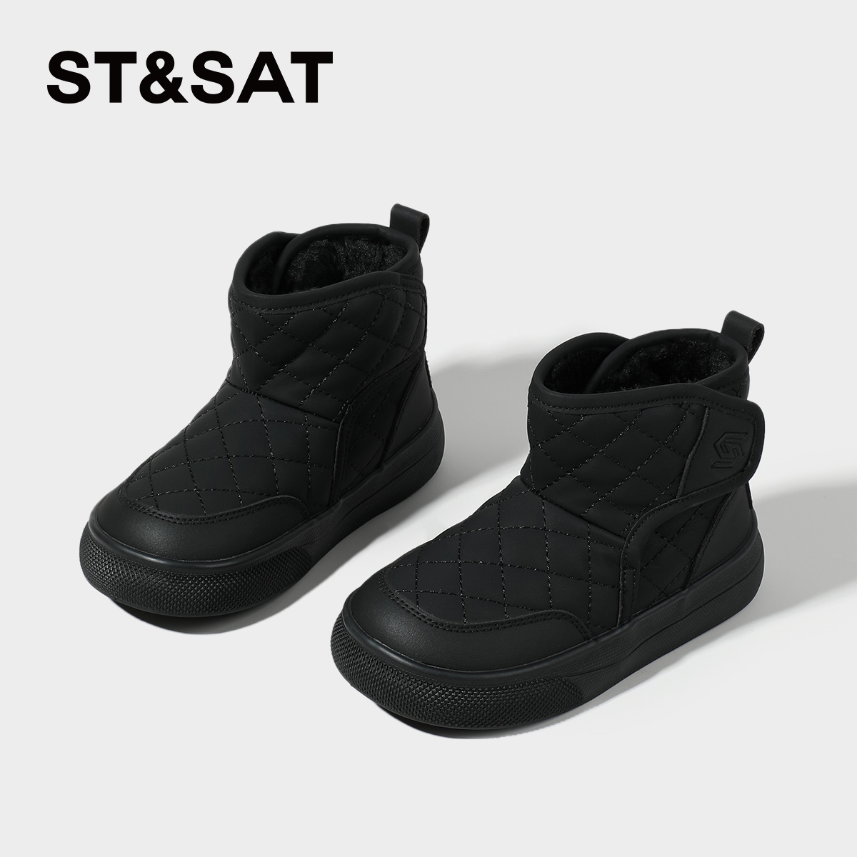 星期六童鞋女童雪地靴冬季新款复古格纹宝宝冬鞋防滑儿童加厚棉鞋