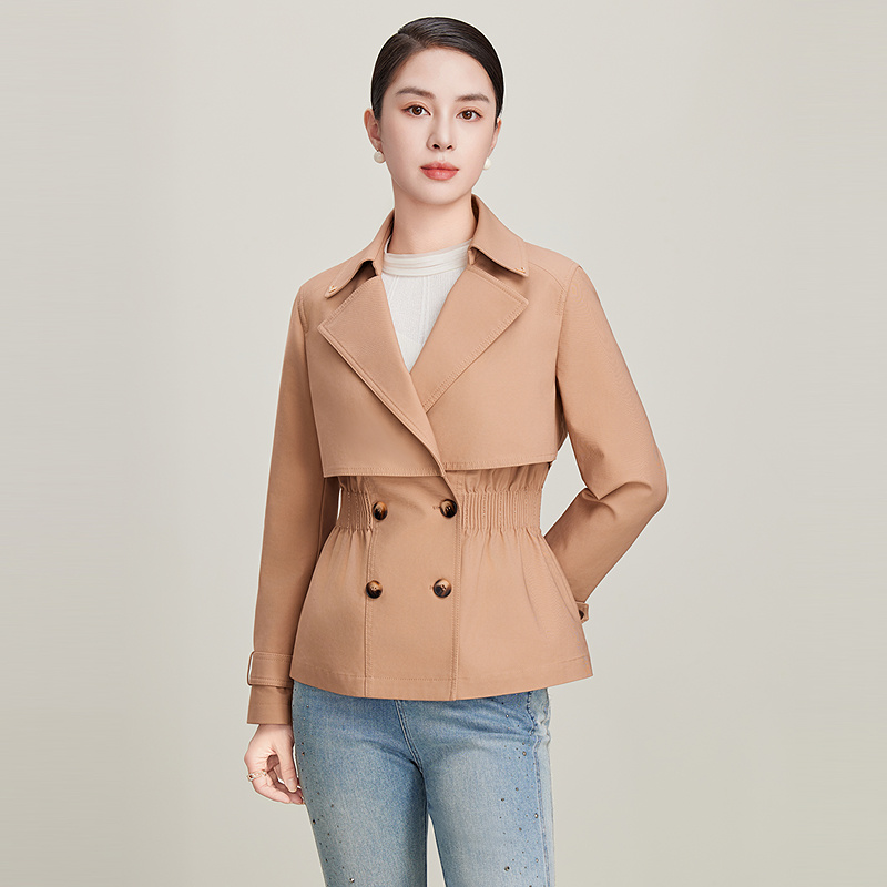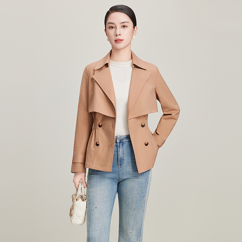 赢智尚卡其色短款高支风衣套装