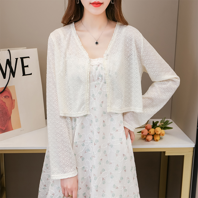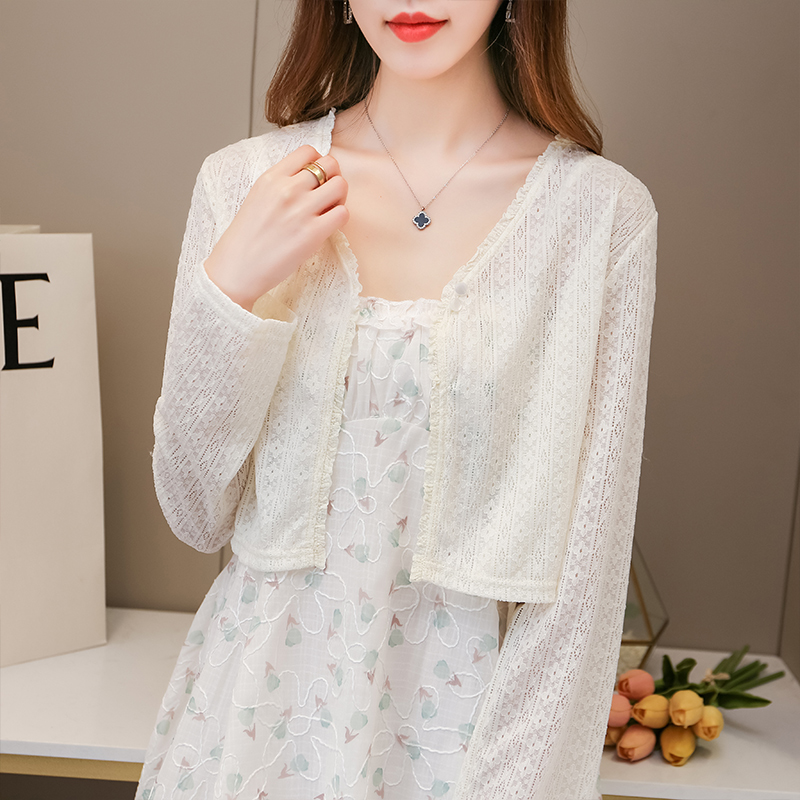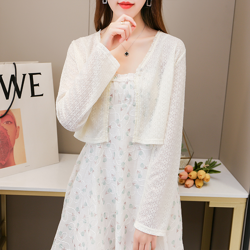 蕾丝防晒开衫上衣女夏季薄款外搭配吊带裙的小披肩短款外套空调衫