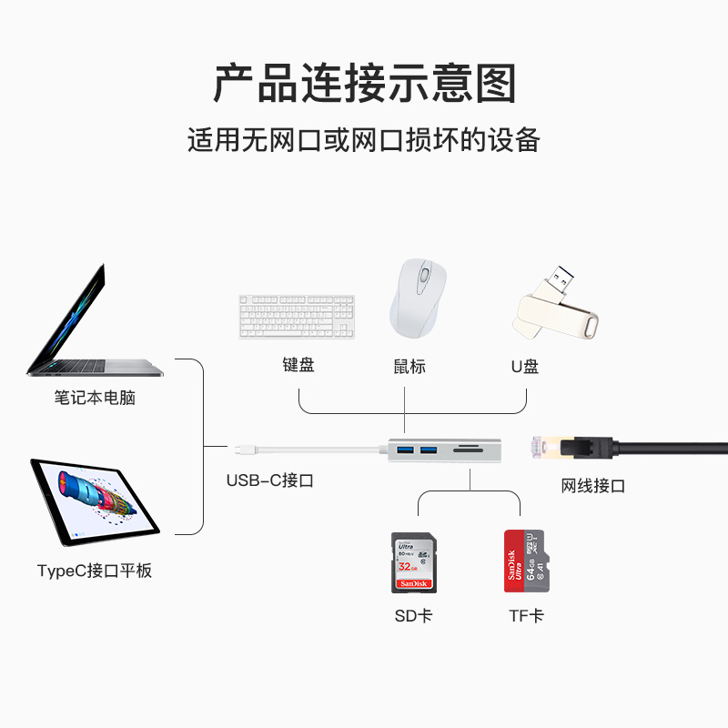 适用联想yoga小新air pro13网口雷电3网线转换器typec转usb笔记本苹果电脑千兆以太网网卡网络转接器接口配件