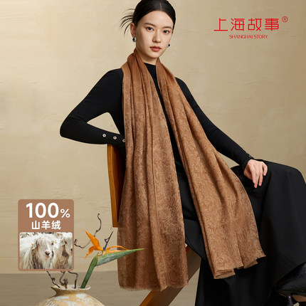 上海故事2025秋冬新款山羊绒围巾精纺披肩保暖妈妈款送长辈礼盒装