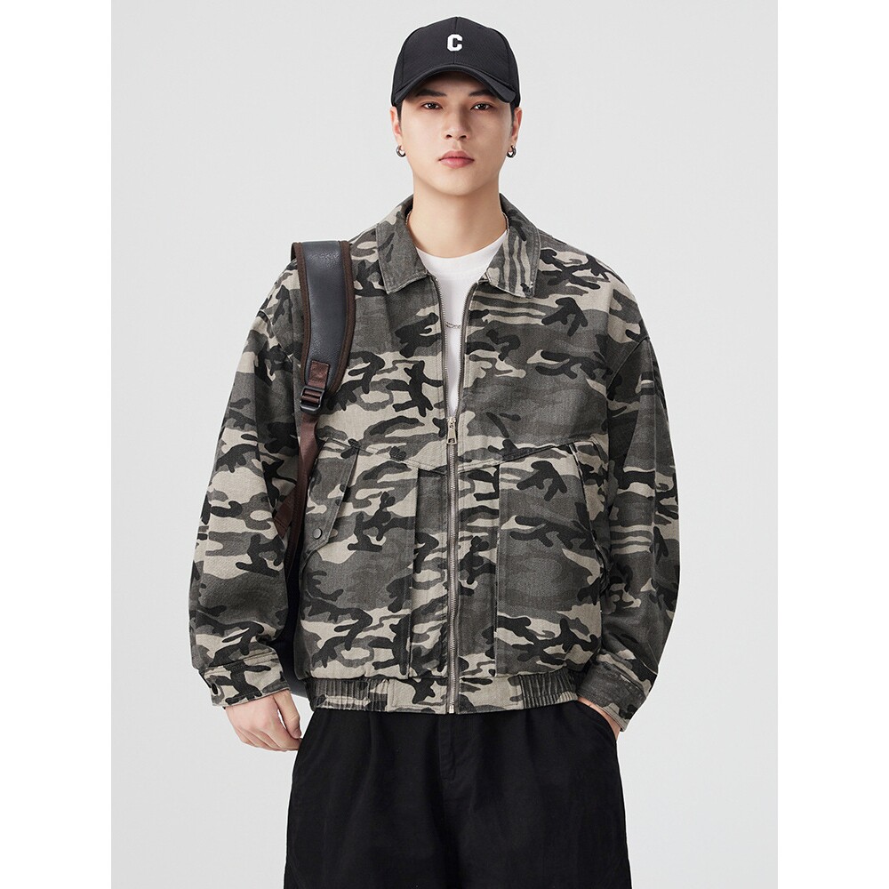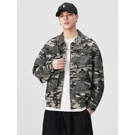 德国季新款迷彩外套男士休闲百搭青年潮流纯棉夹克翻领外衣