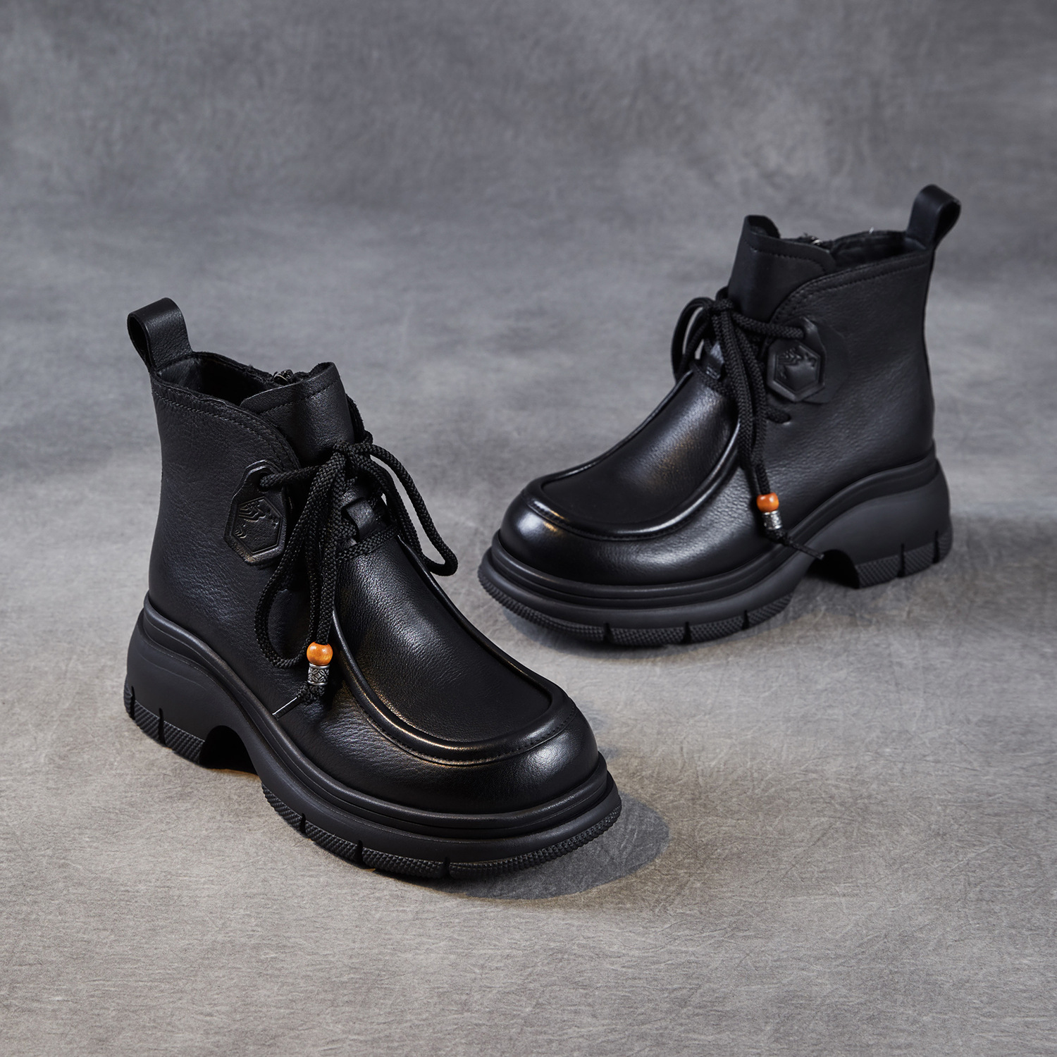真皮厚底增高马丁靴女2025秋冬新款头层牛皮复古英伦复古系带短靴