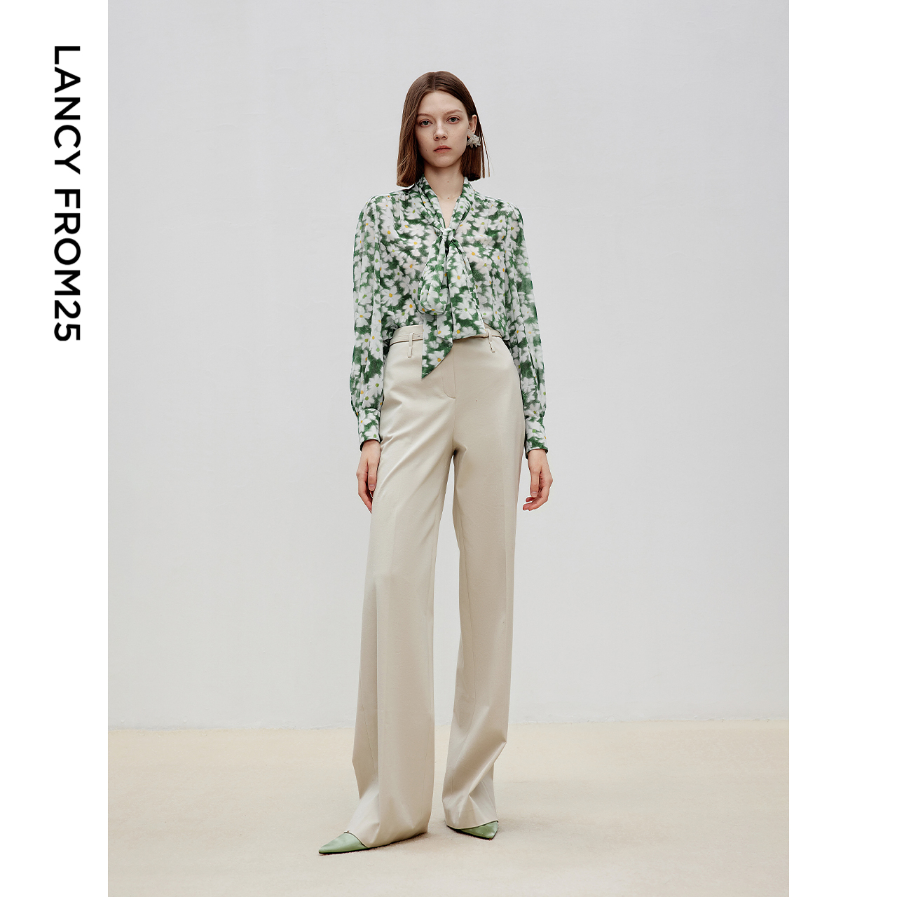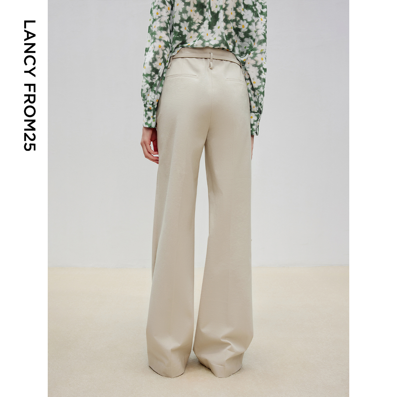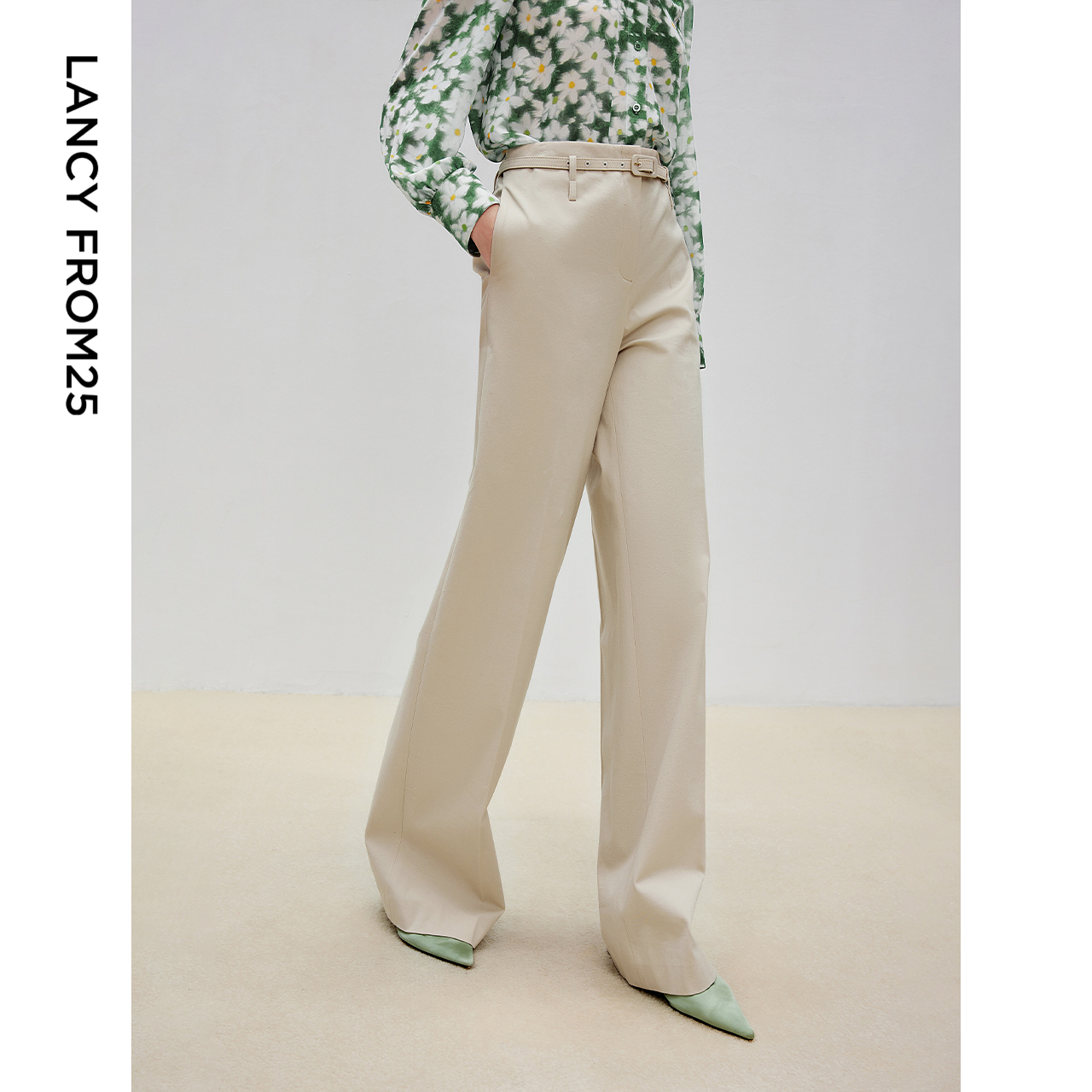朗姿棉质西装裤2025年春季新款阔腿直筒裤长款高级感通勤职业裤子