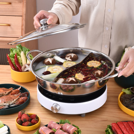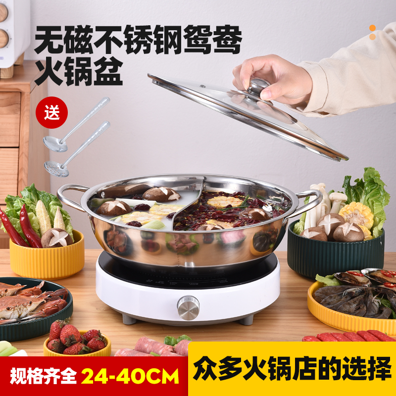 不锈钢加厚火锅家庭用鸳鸯火锅盆电磁炉锅具专用刷肚锅中式清汤锅