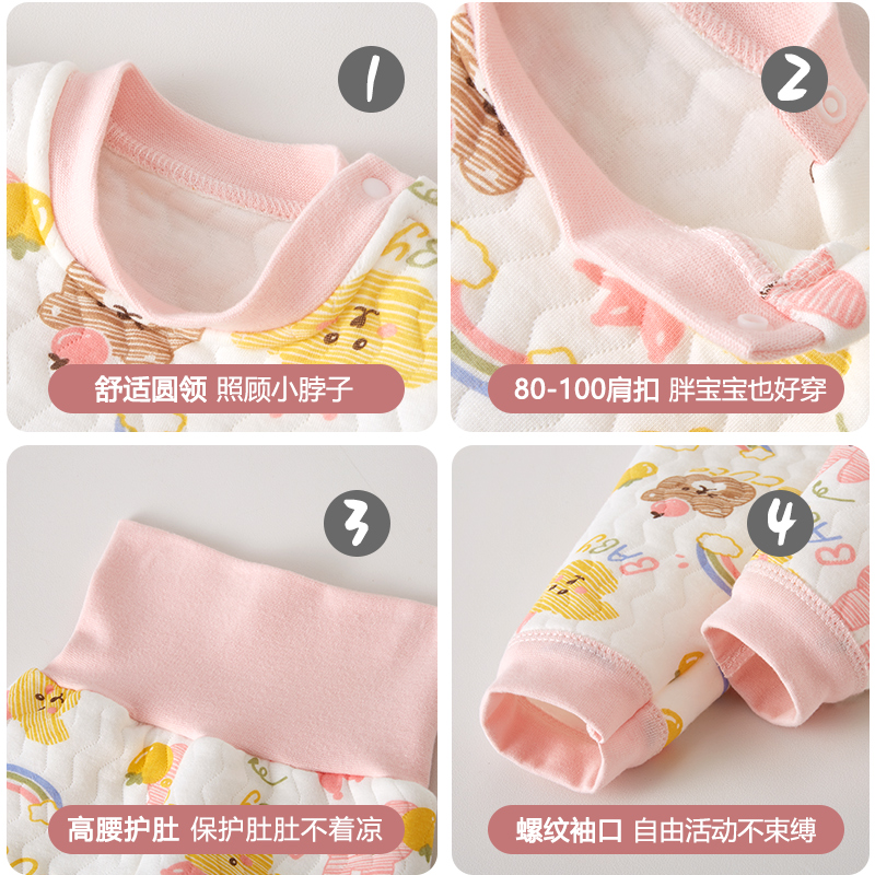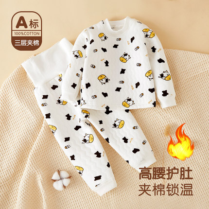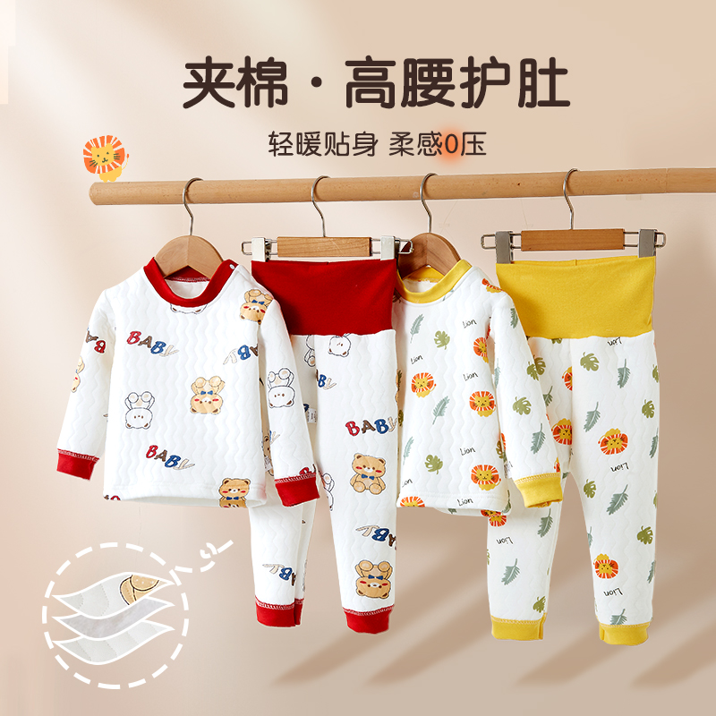 儿童冬季夹棉加厚高腰保暖套装男宝女宝保暖内衣加长护肚纯棉睡衣