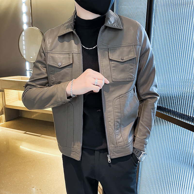 加绒潮牌保暖痞帅皮衣外套翻领潮