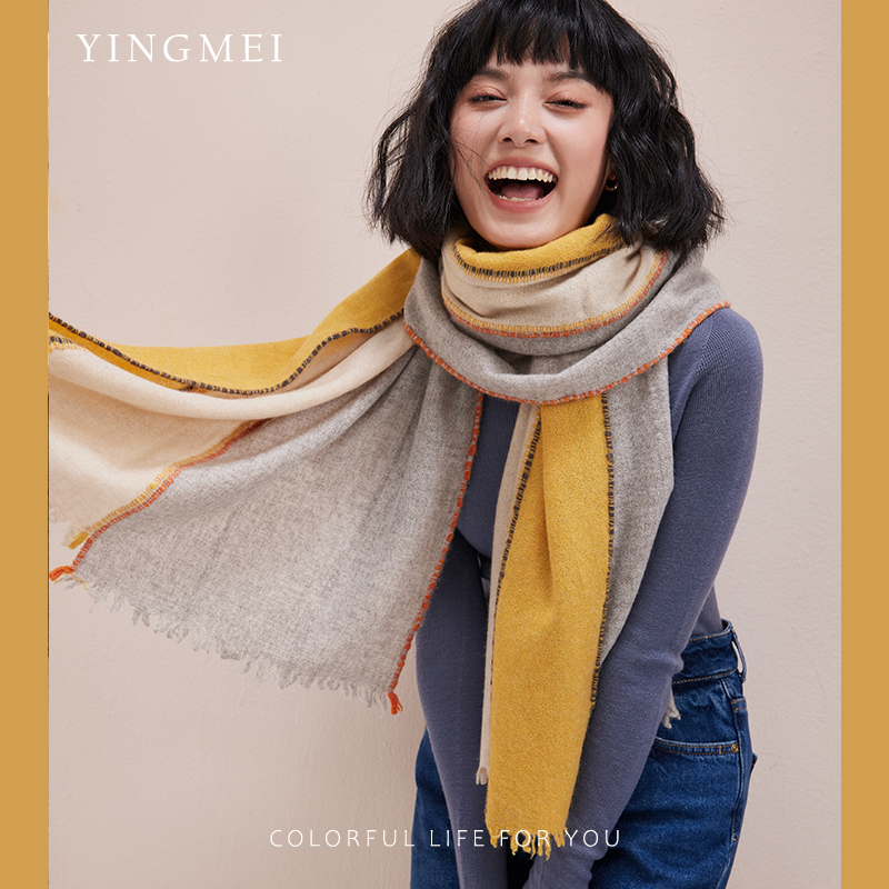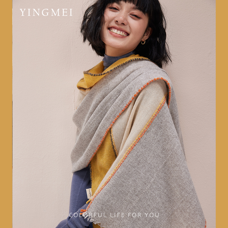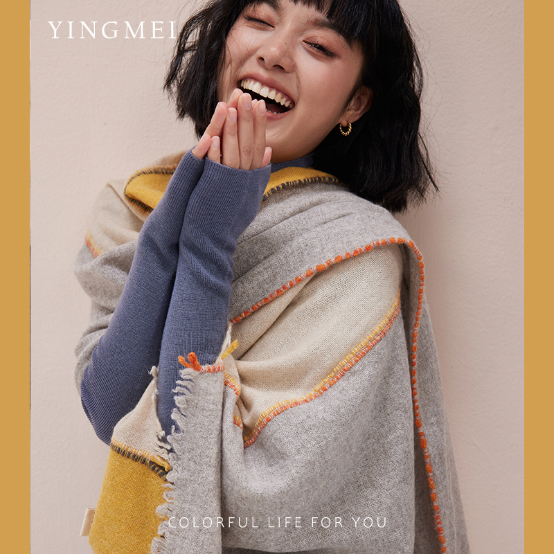 盈妹赫奇帕奇丨手工工艺纯山羊绒披肩拼接款设计围巾女士外搭高端