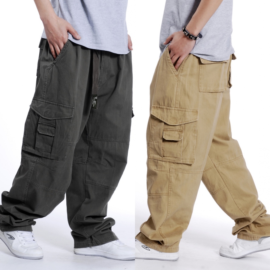 欧版宽松老爹阔腿裤 重磅纯棉多口袋休闲裤 嘻哈加大码肥佬工装裤