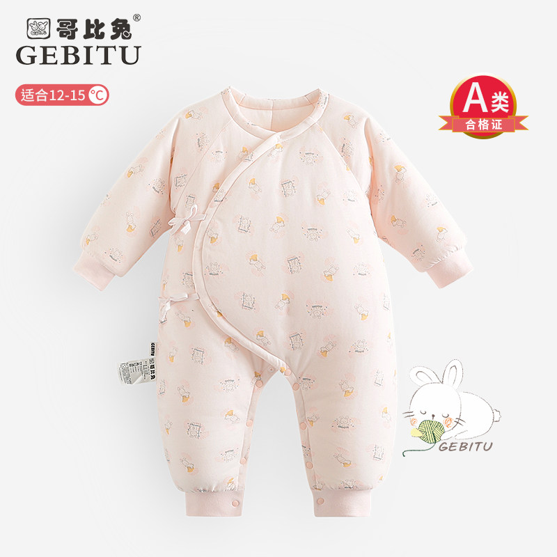 哥比兔新生儿儿衣服冬季宝宝连体衣纯棉和尚哈衣婴儿爬服加厚棉衣