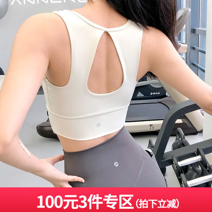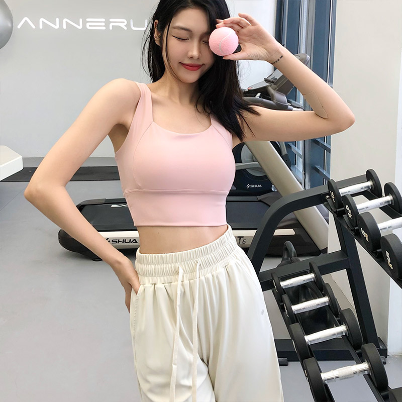 annerun运动内衣女一体式胸垫后背镂空瑜伽背心防震聚拢健身文胸