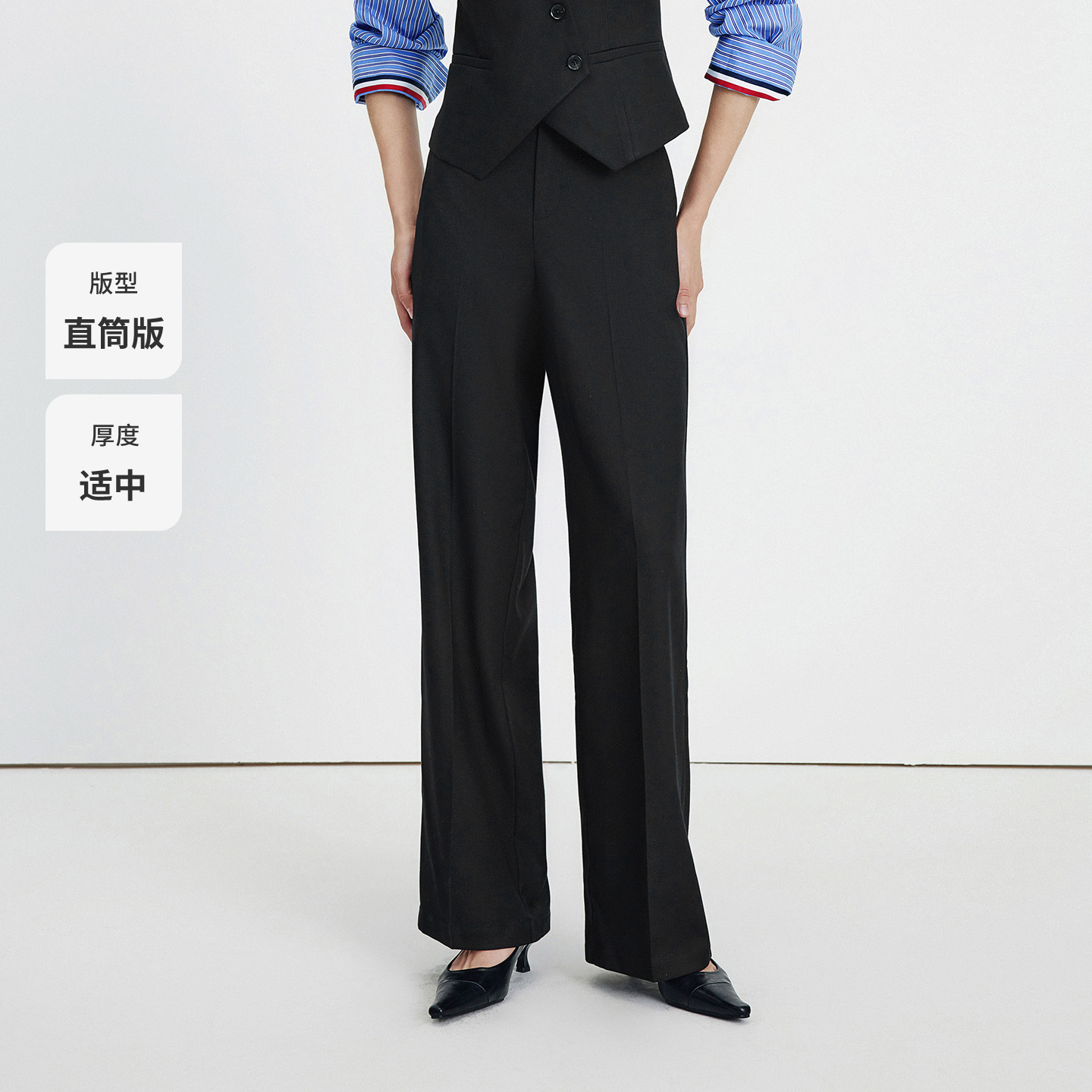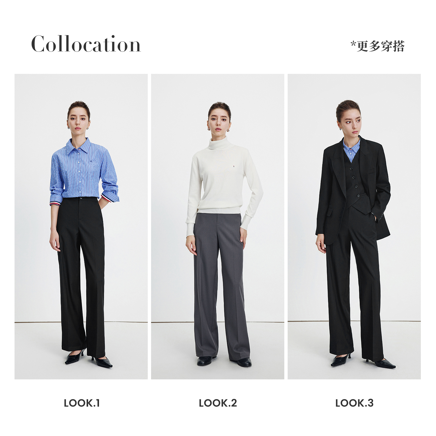 Navigare意大利小帆船2025秋季新款老钱风松紧腰羊毛直筒休闲裤女