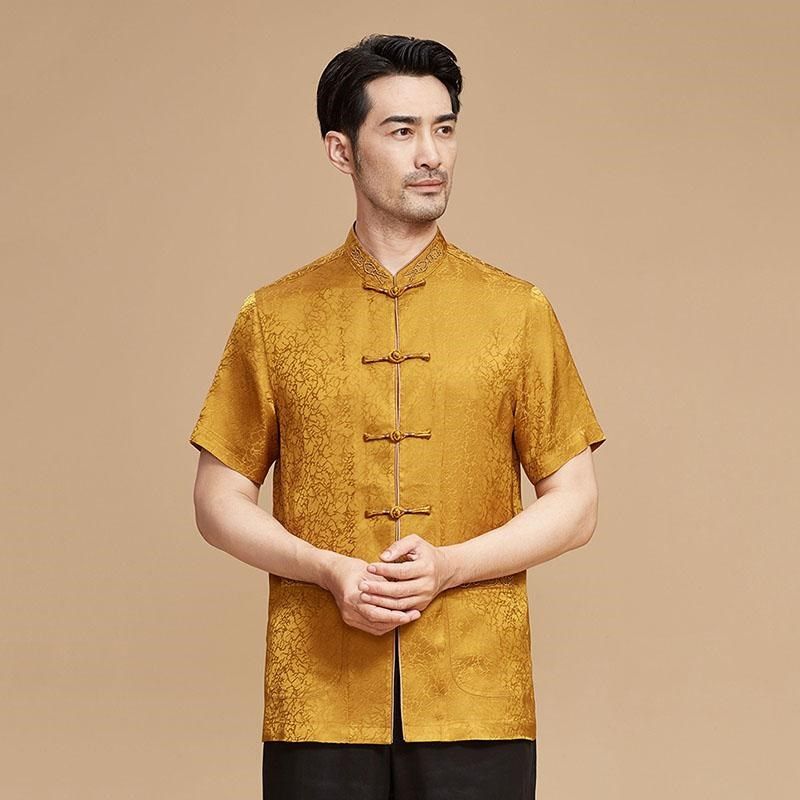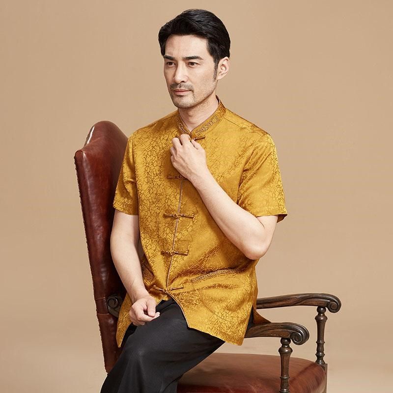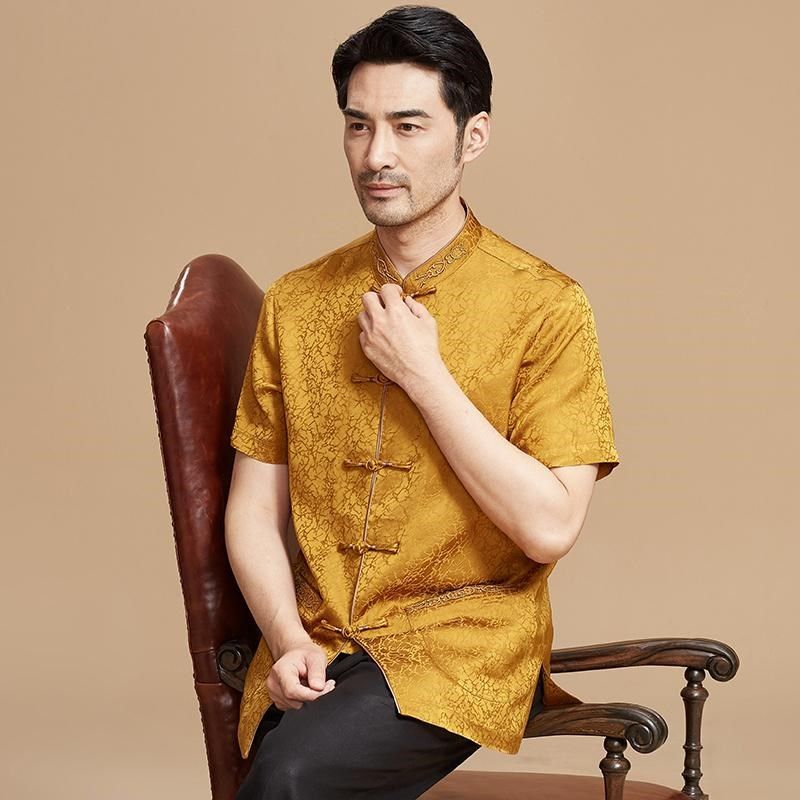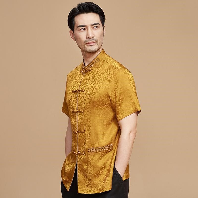 唐装男中老年夏短袖中式立领盘扣衬衫中国风休闲刺绣高档刺绣上衣