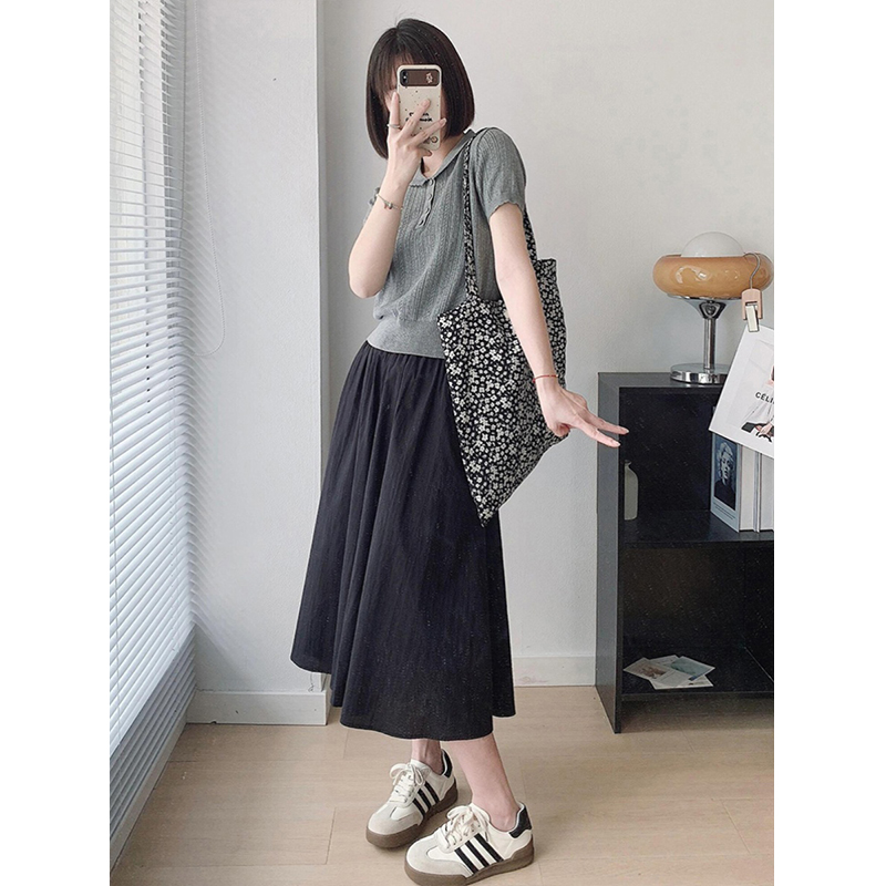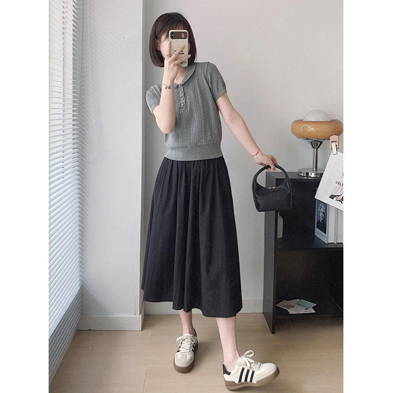 法式娃娃领Polo针织短袖T恤上衣