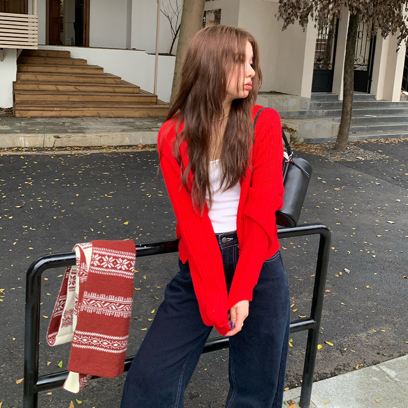 【限时价】橘子树在哪儿韩系针织开衫女秋设计感外搭短款长袖上衣