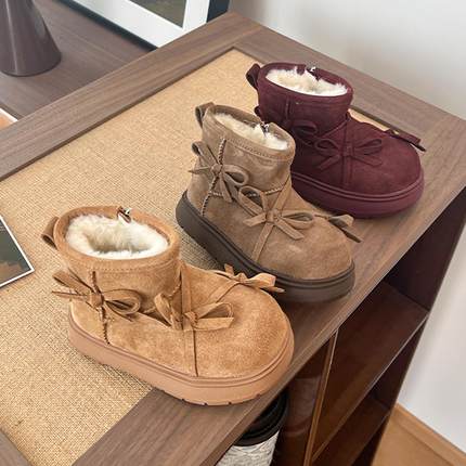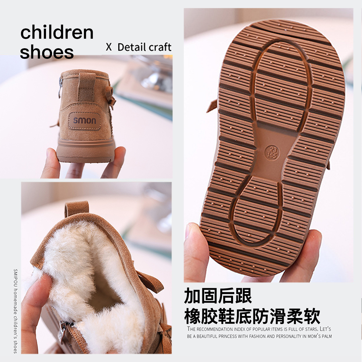 大头儿童雪地靴女童东北大棉鞋2025新款冬季加绒加厚保暖宝宝短靴