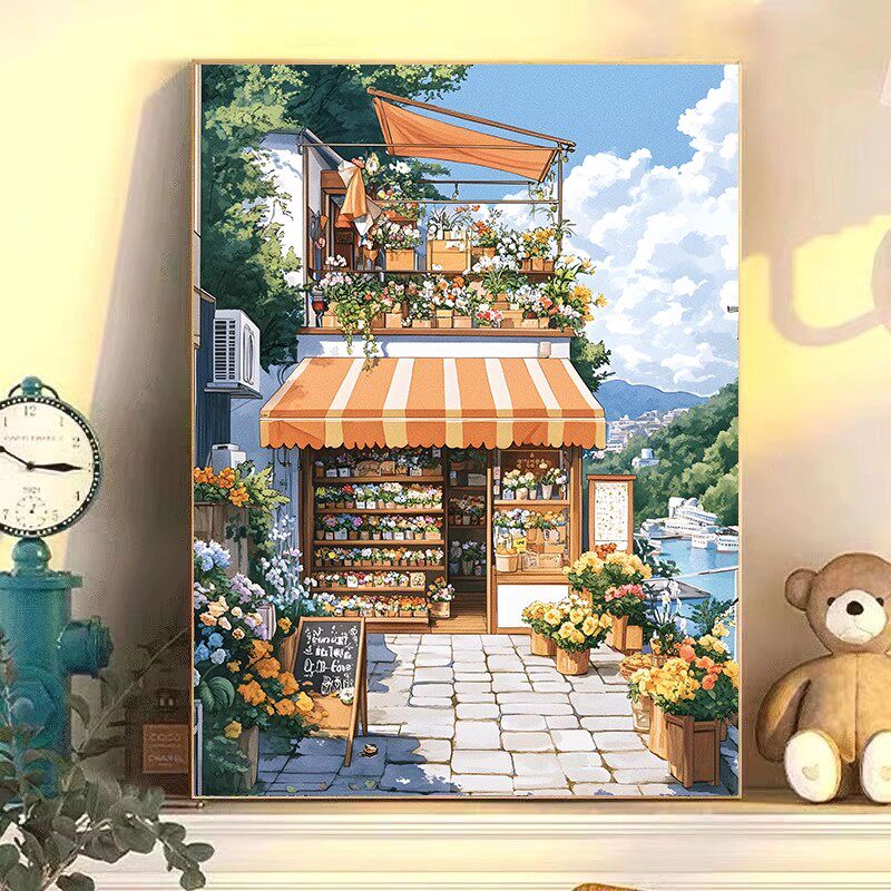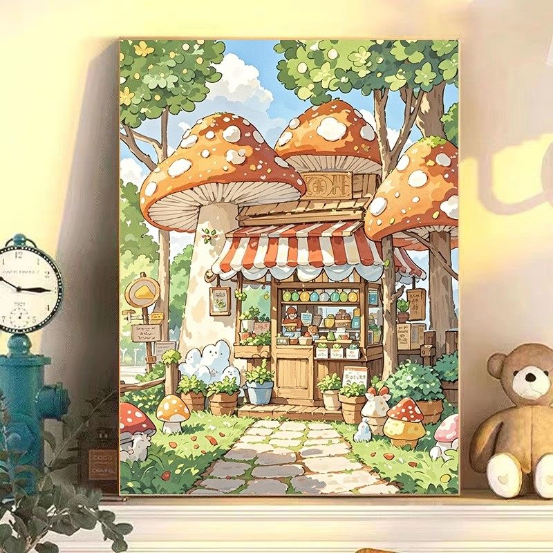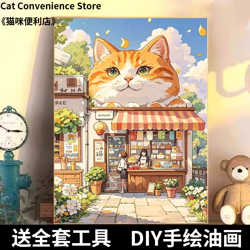diy手工数字油画猫咪便利店手工填色无聊解闷油彩客厅卧室装饰画