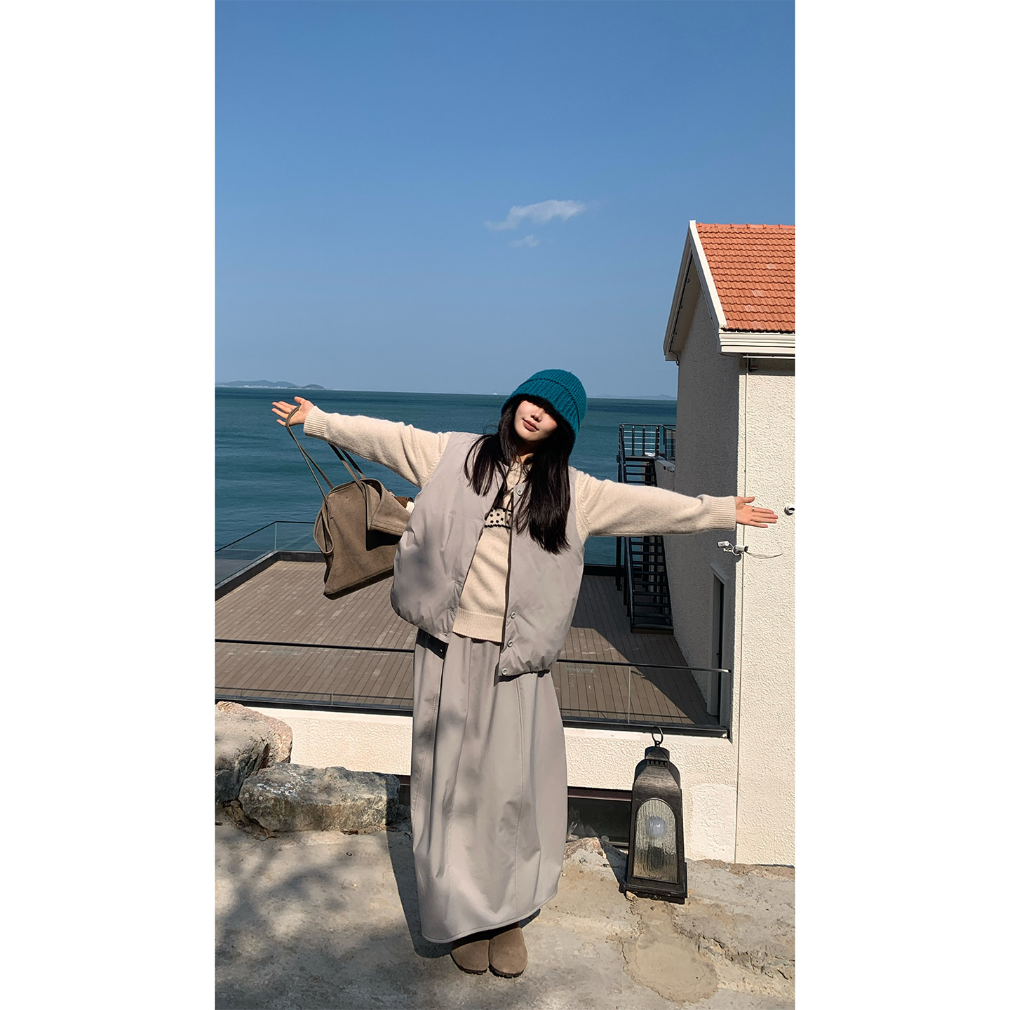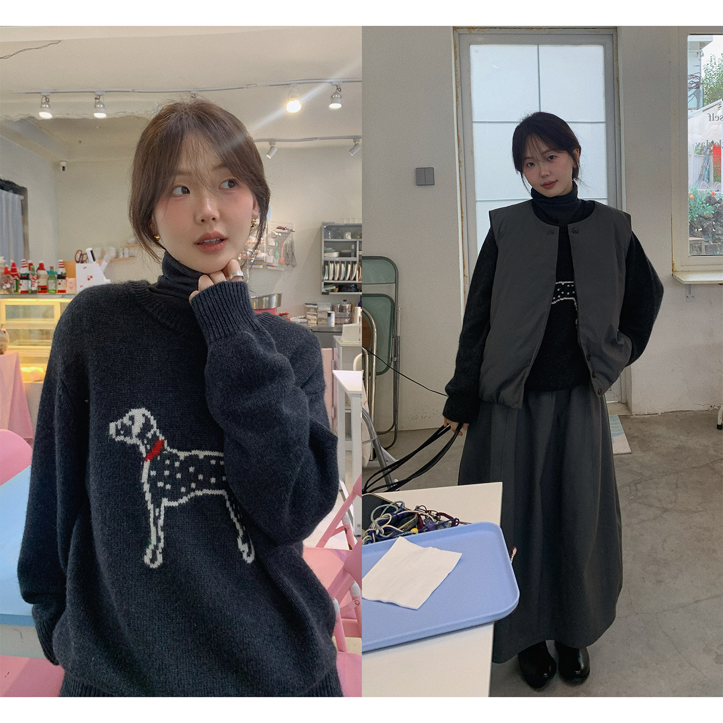 一三良品小个子 白色灰圆领斑点狗针织衫套头毛衣洋气显瘦女冬新