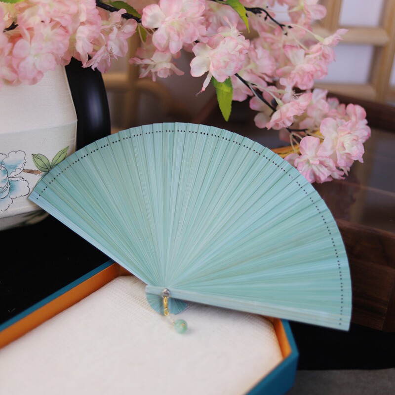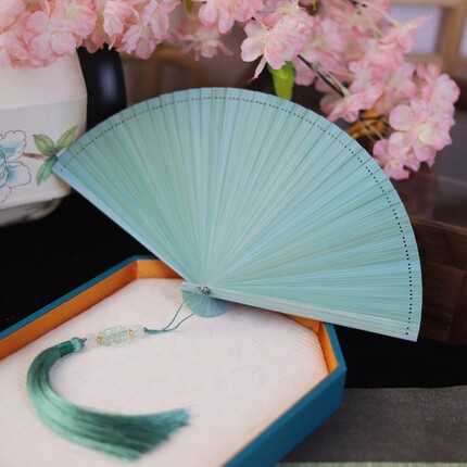 扇子松石绿全竹折叠舞蹈扇夏季女