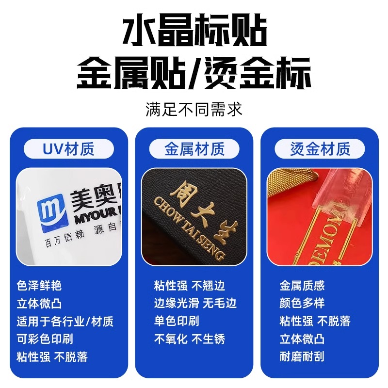 水晶标logo定制公司企业广告商标烫金冷热转移贴包装礼品盒撕膜留字防水自粘立体金属标签伴手礼包装uv转印贴