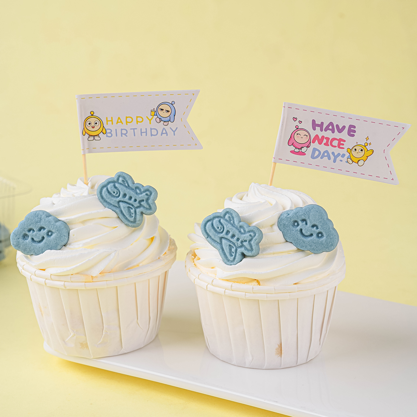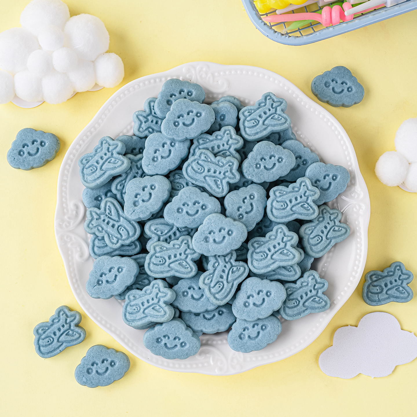 蓝色海盐味飞机云朵造型饼干蛋糕装饰天空系冰淇淋热奶宝纸杯摆件