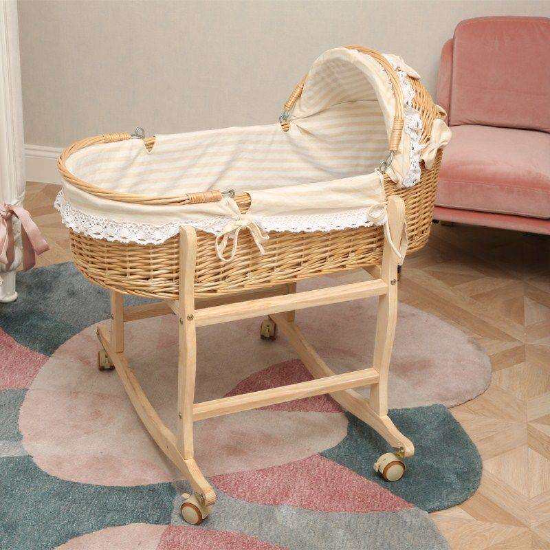 藤编便携手提篮车载睡篮小孩摇篮床摩西摇窝外出婴儿悠车老式