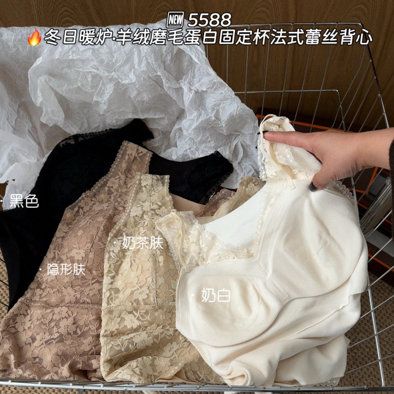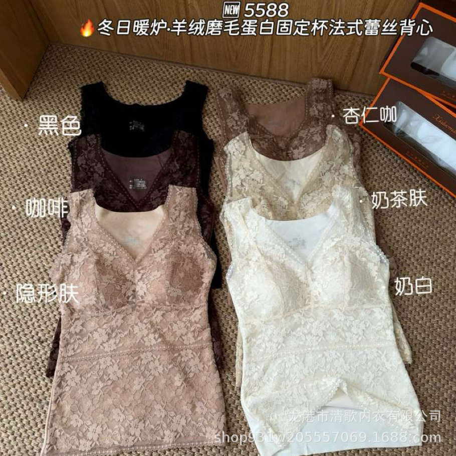 2025秋冬新品羊绒蛋白蕾丝法式V领发热保暖背心女修身打底衫内搭