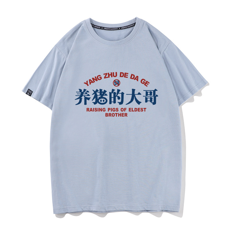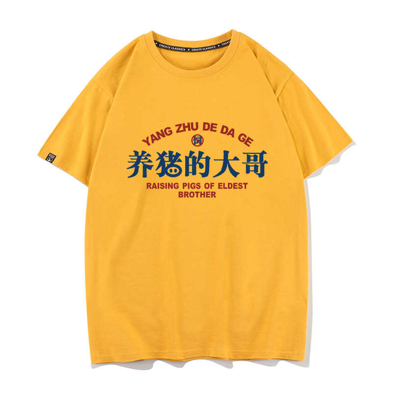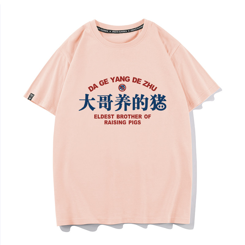国潮文字母印花养猪的大哥T恤情侣短袖男装女体恤BF风夏装上衣服