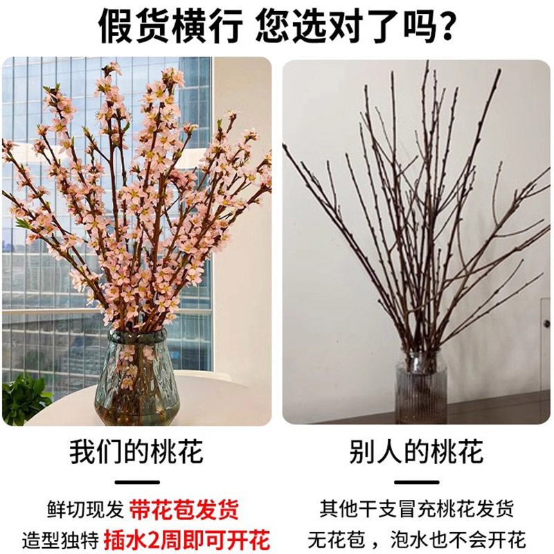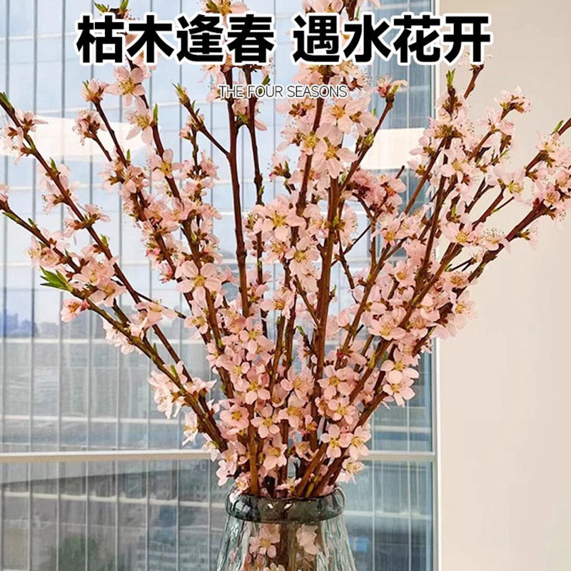 水培鲜切桃花枝带花苞树干枝红梅珍珠李鲜花室内花卉盆栽水养绿植