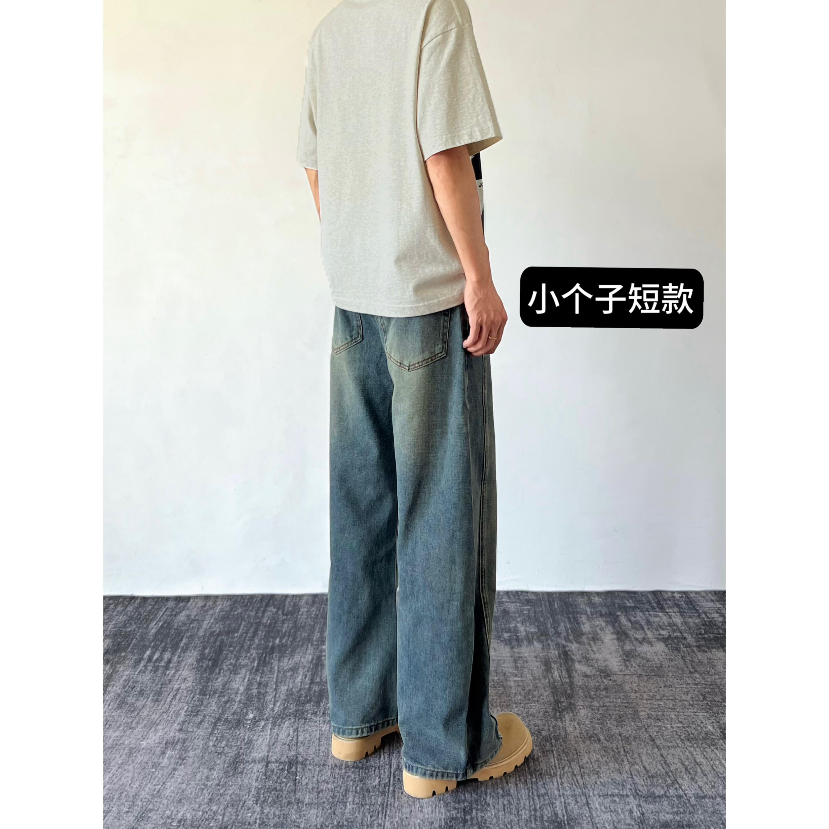BBC【小个子定制短款】复古做旧明线秋冬季弯刀裤宽松阔型牛仔裤