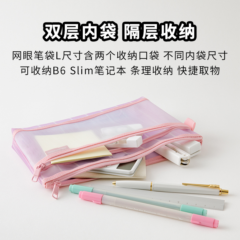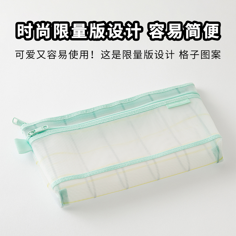 日本midori 网眼笔袋条纹方格柔软限定文具收纳袋大容量化妆包