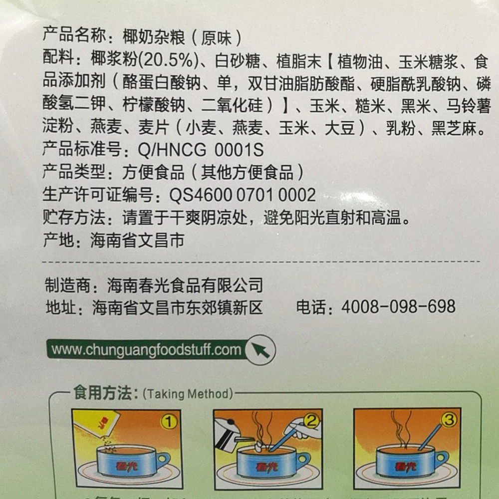 海南特产 春光椰奶杂粮525g 原味袋装 内含15包谷物营养麦片早餐