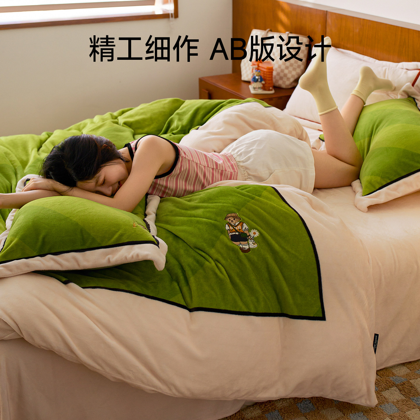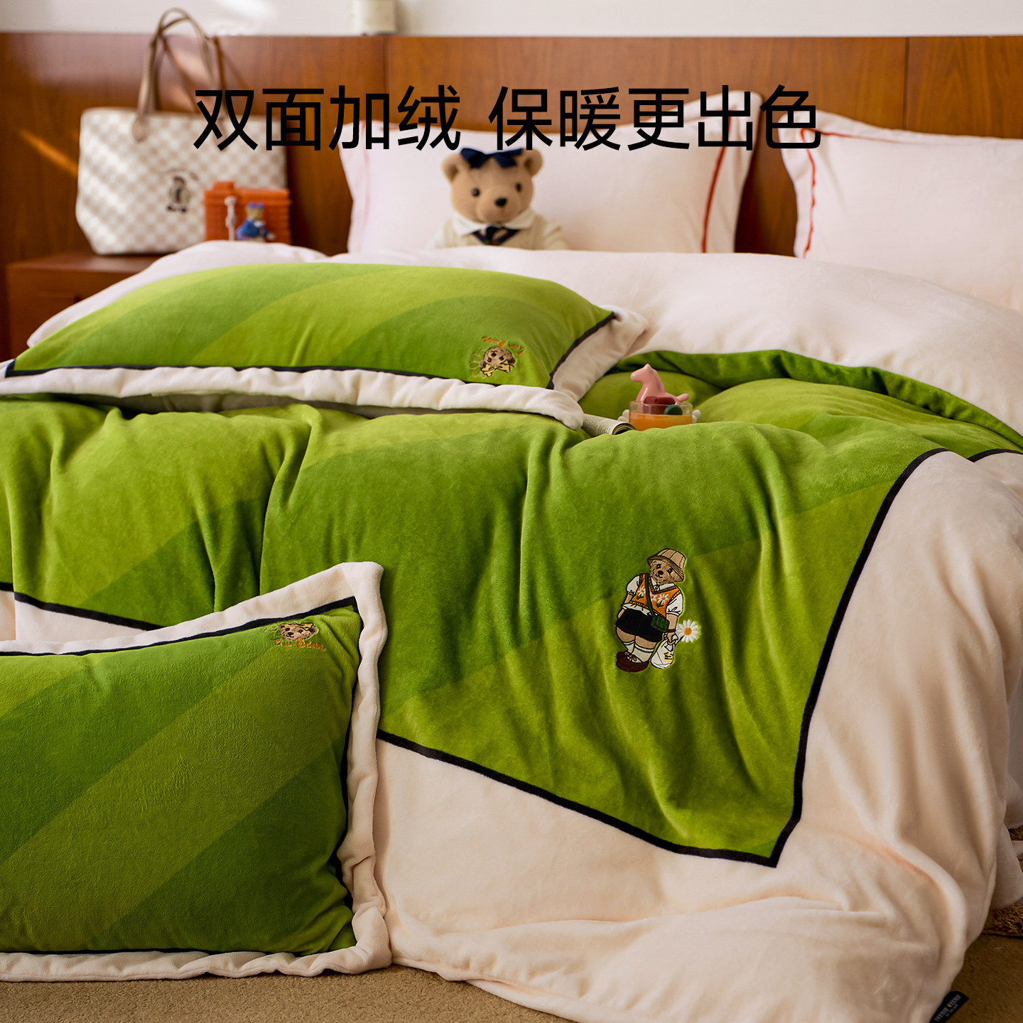 TeenieWeenie冬季牛奶绒四件套加绒保暖珊瑚绒被套床单床笠款套件