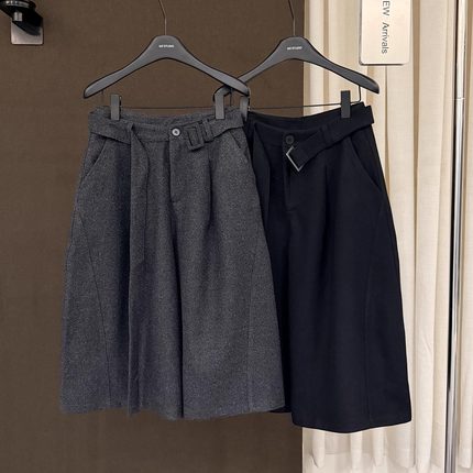 高端欧货冬季新款高级感巨好看的休闲阔腿直筒裤女毛呢七分中裤子