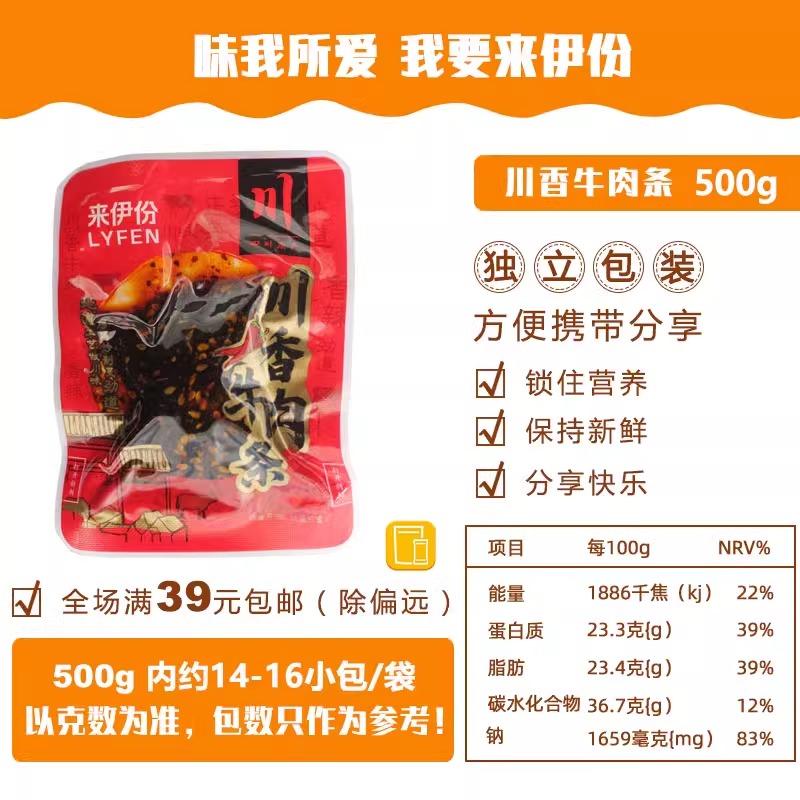 来伊份川香牛肉条500g
