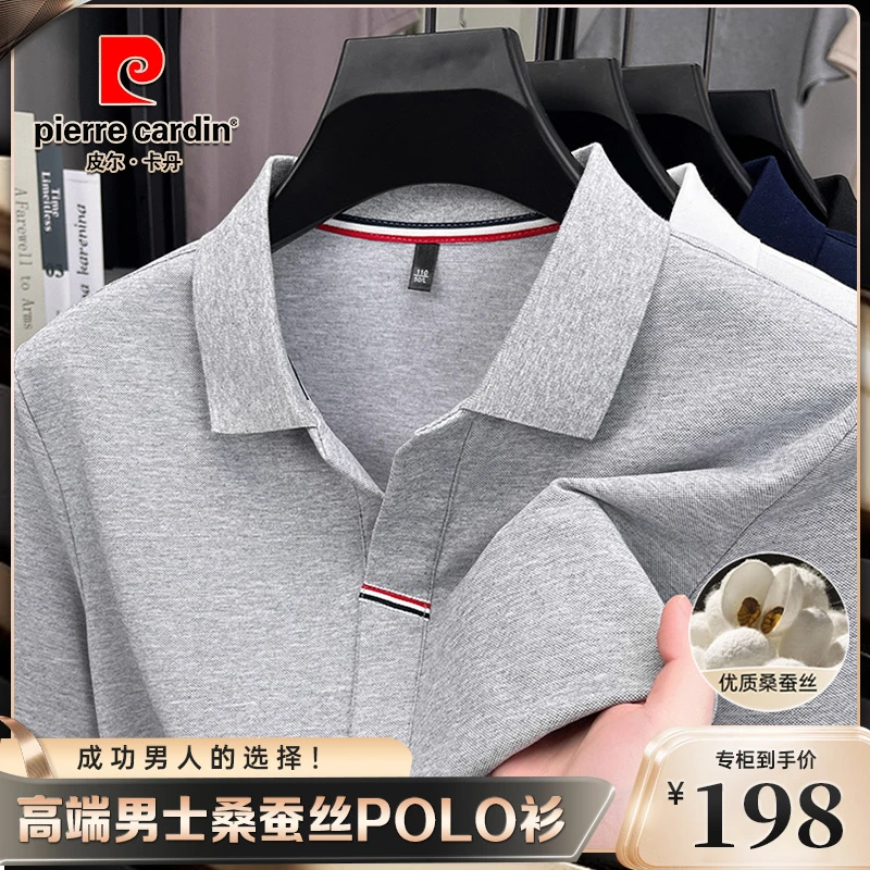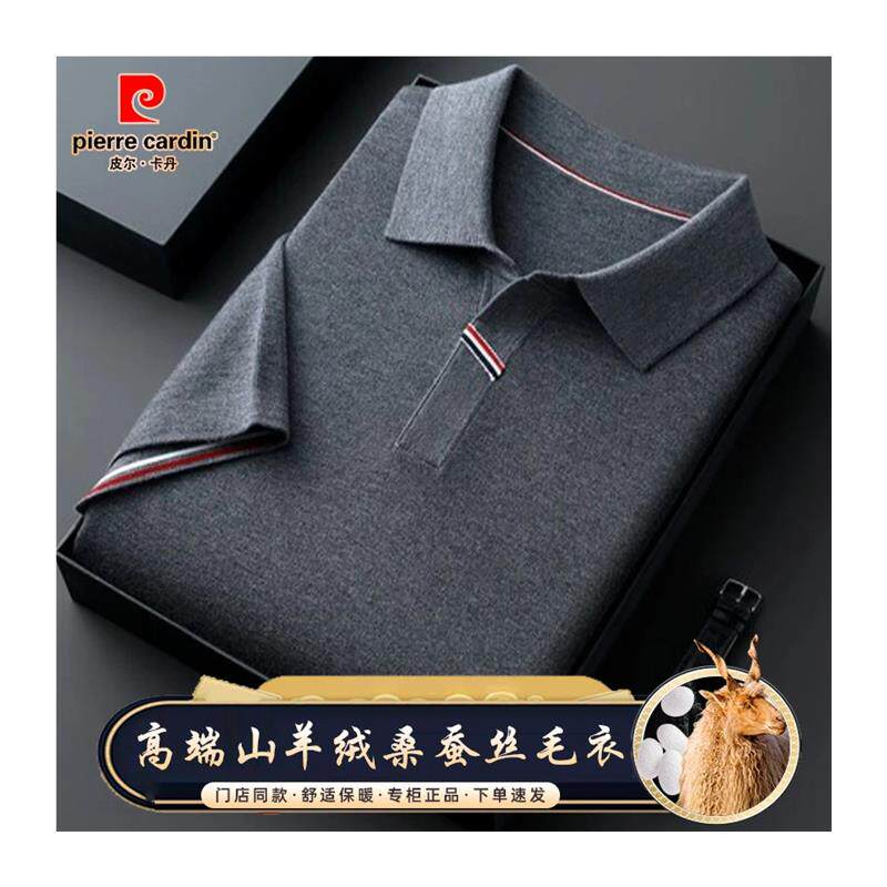 皮尔卡丹男士短袖t恤2025春夏季高品质羊绒桑蚕丝翻领毛衣polo衫