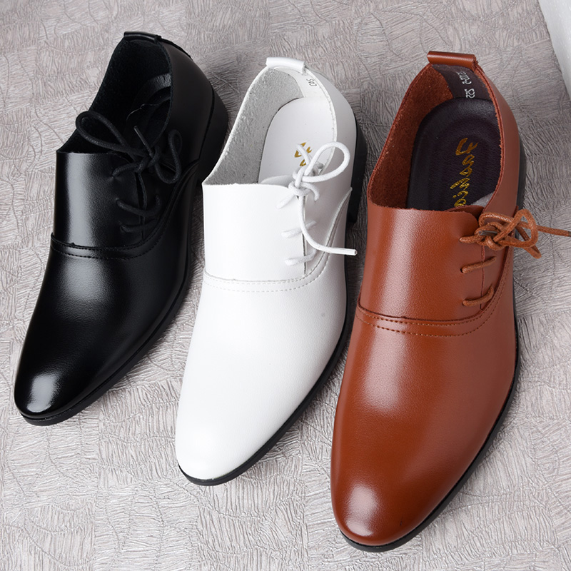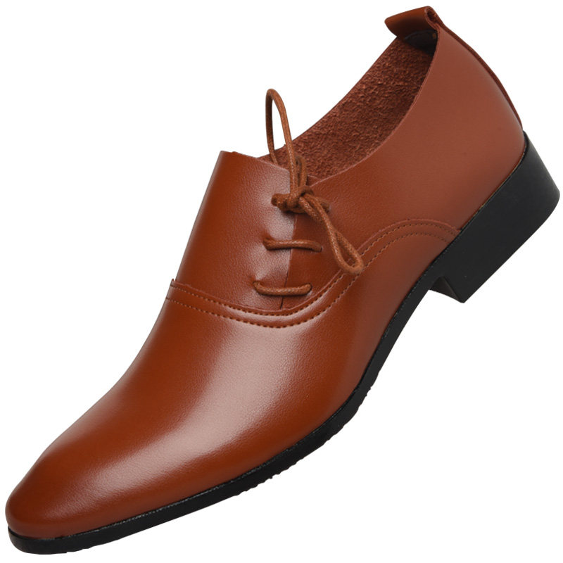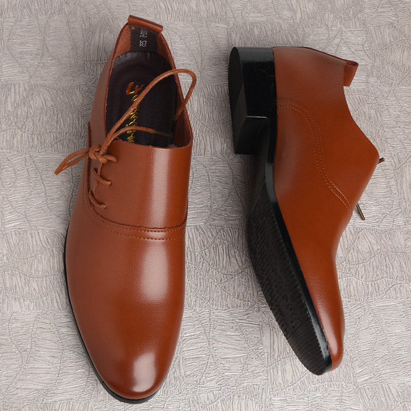 青年棕色皮鞋男韩版英伦正装商务休闲尖头软面皮结婚新郎伴郎皮鞋