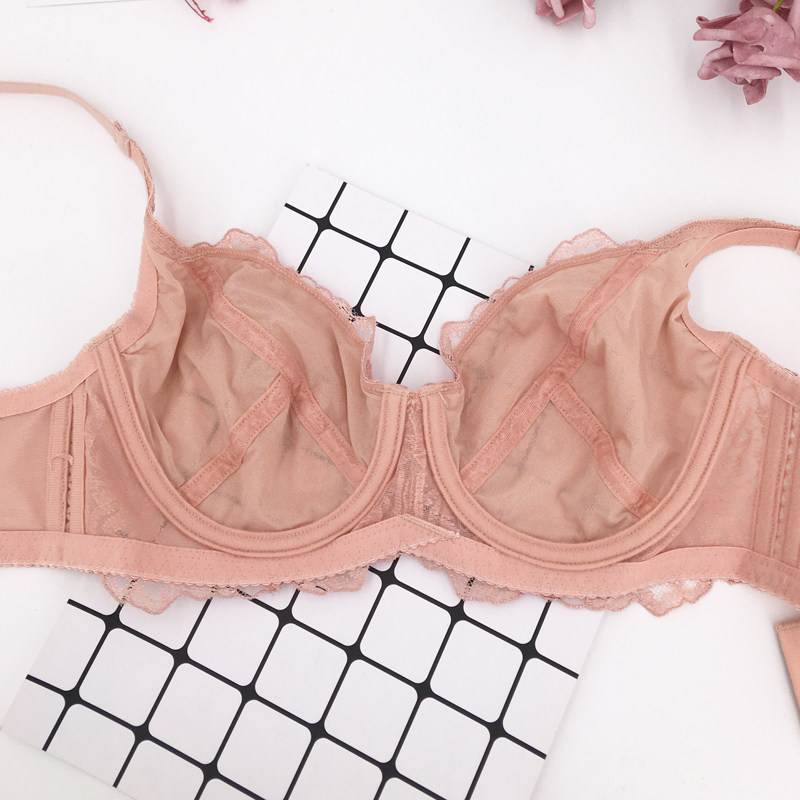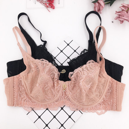 桑扶兰文胸女夏季透气蕾丝胸罩超薄半透明舒适聚拢侧收内衣AJE01