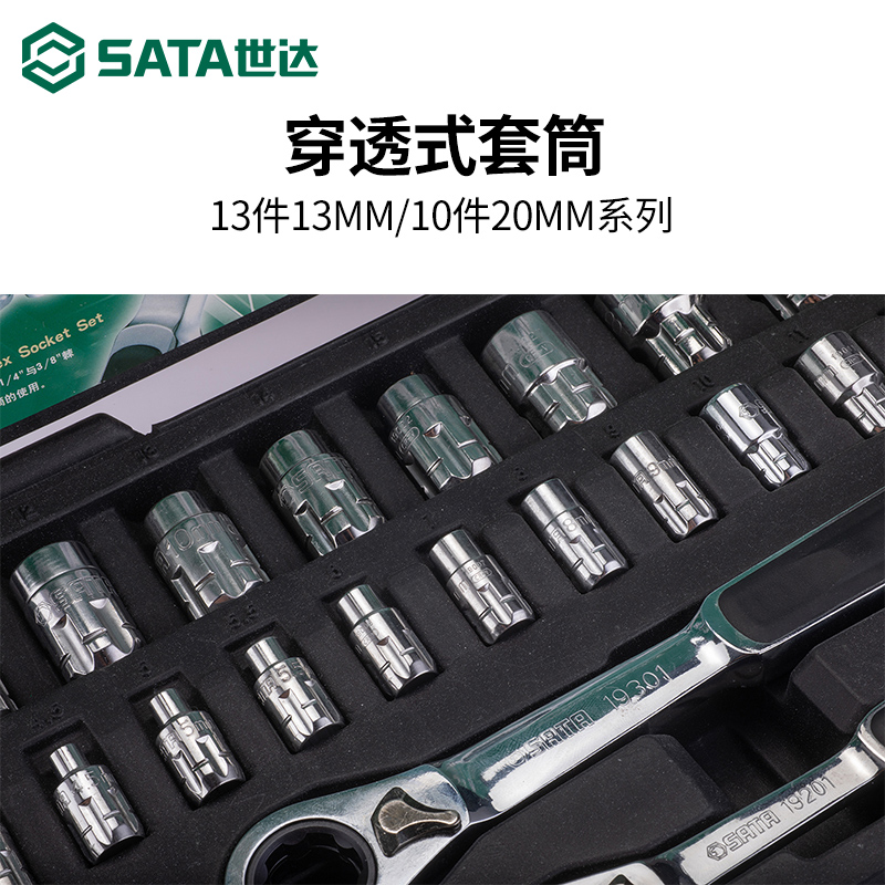 SATA世达穿透式套筒汽车机械维修专用工具箱组合套装快速棘轮扳手