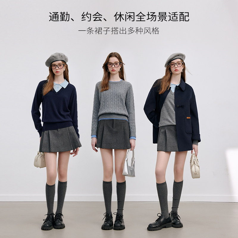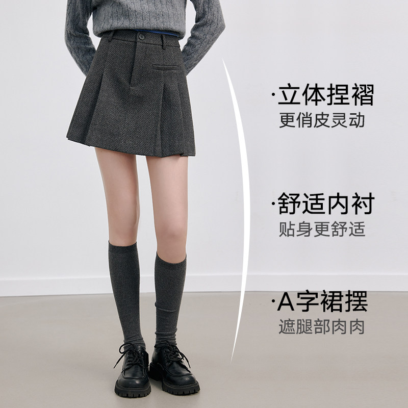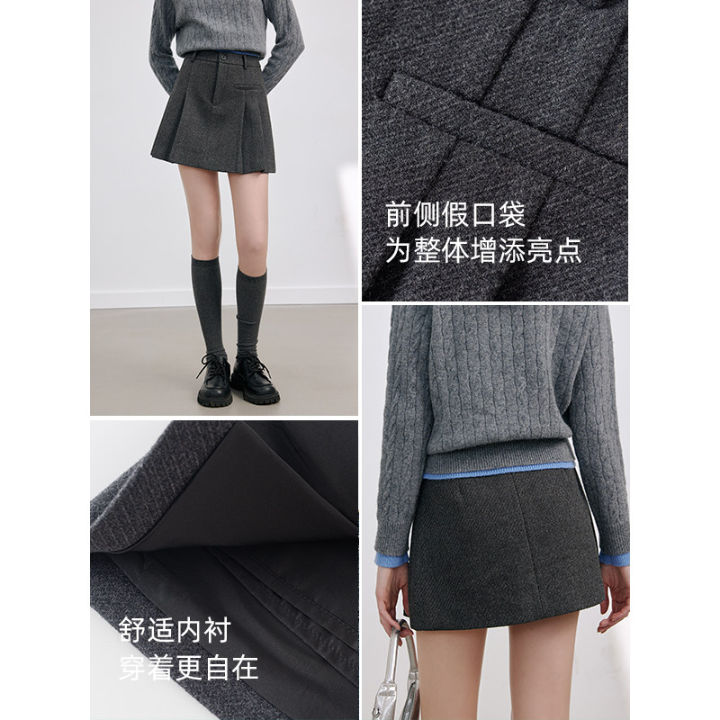 KBNE灰色半身裙百褶裙2025秋冬新款A字裙小个子半裙气质短裙女装