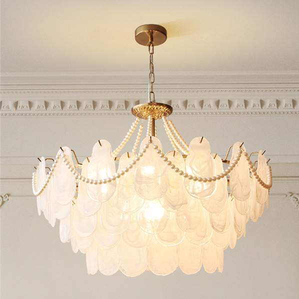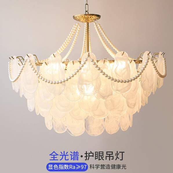 轻奢法式全光谱客厅吊灯复古简约现代水晶珍珠贝壳主卧室餐厅灯具