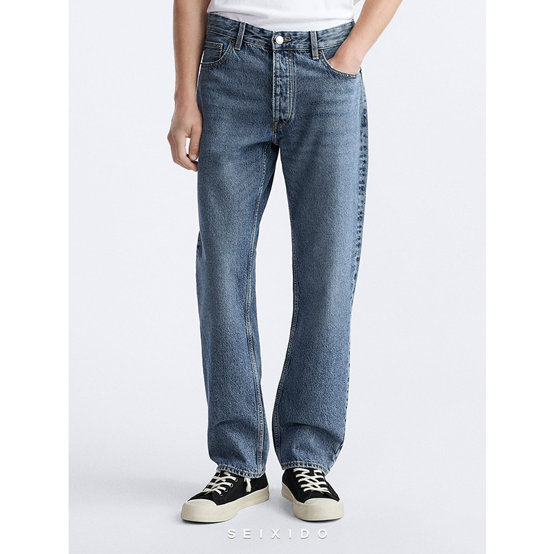 柜319!秋冬新款男装水洗直筒牛仔裤欧美简约休闲厚长裤男8062303