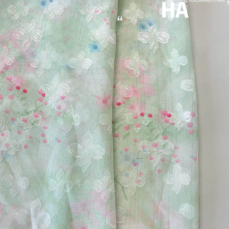 超仙气浅绿色汉服提花手工布料