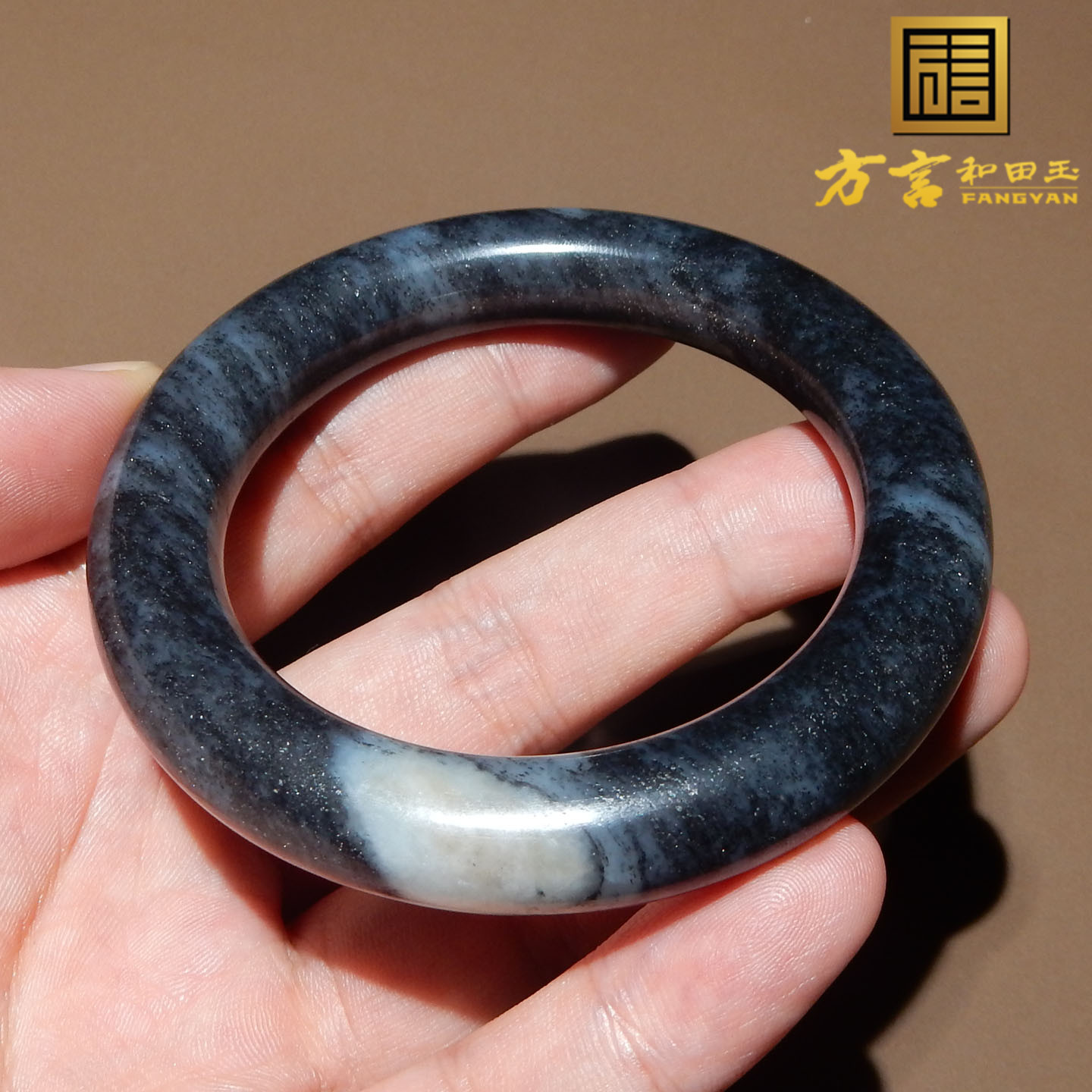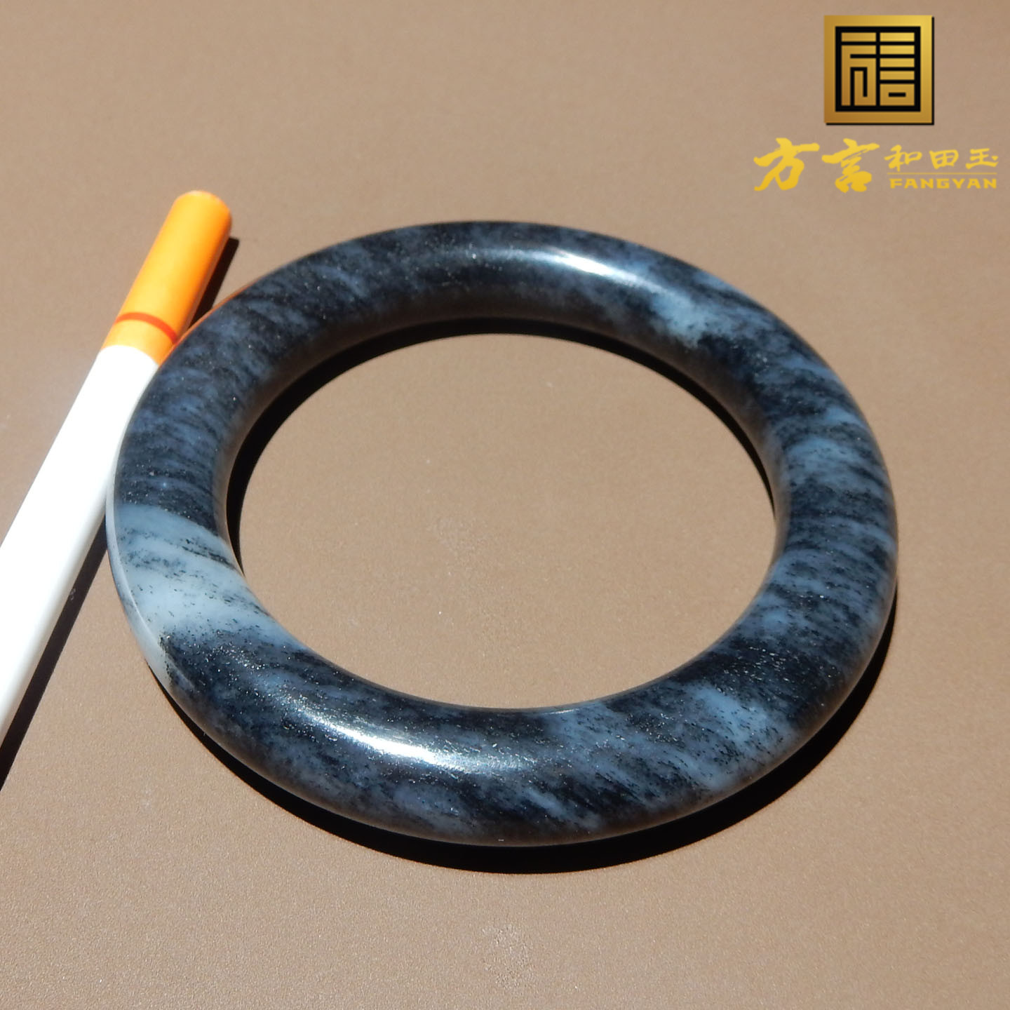 方言和田玉藏品新疆青花籽料细腻高脂意境十足内径57mm正装手镯w4