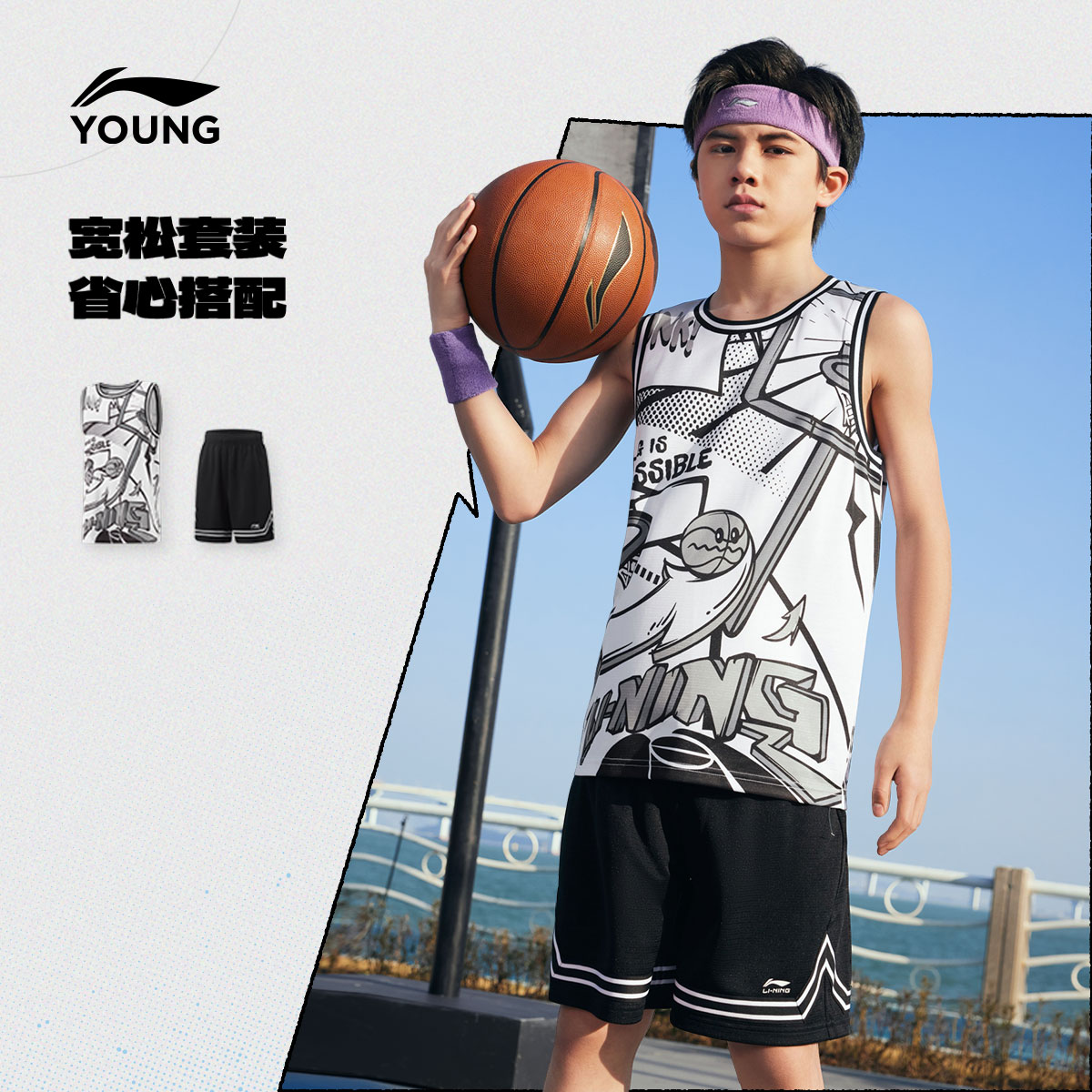 李宁儿童速干凉感篮球服运动套装2025新款夏季男童装大童宽松夏装