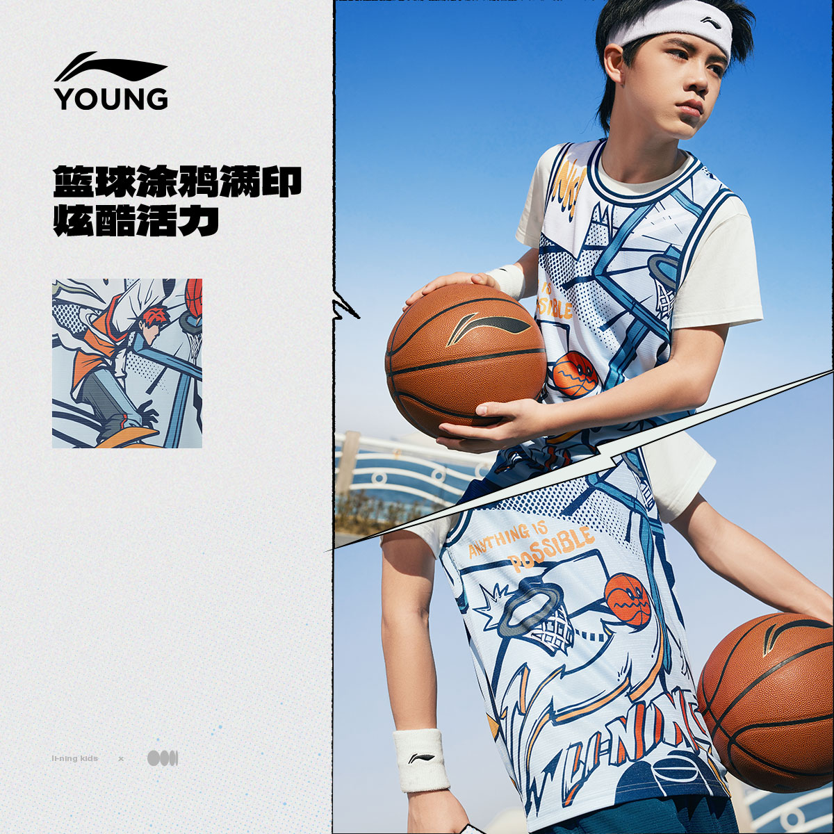 李宁儿童篮球服速干凉感运动套装