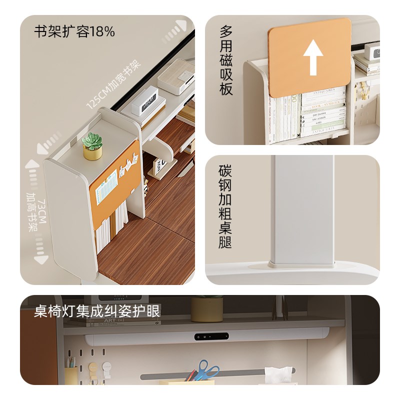 儿童学习桌f写字桌家用升降桌子实木写作业课桌椅套装照明灯