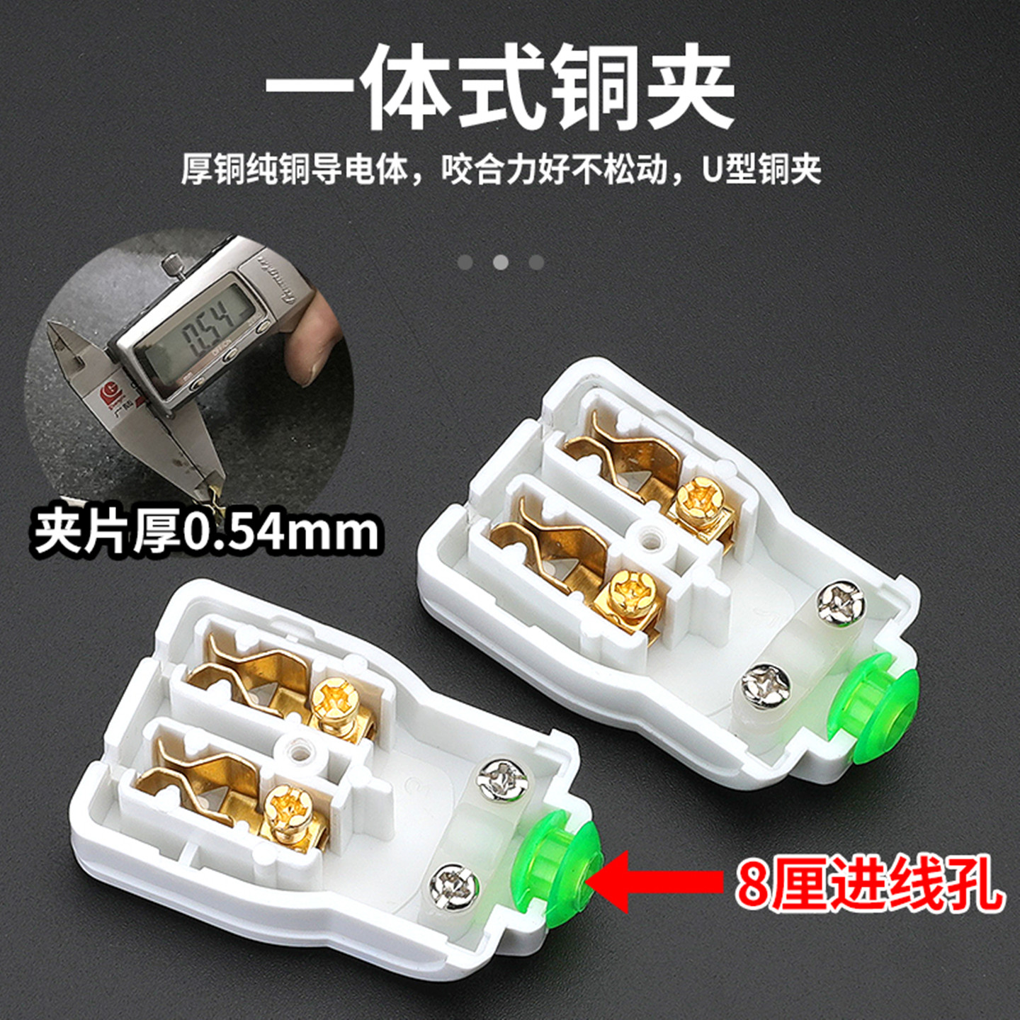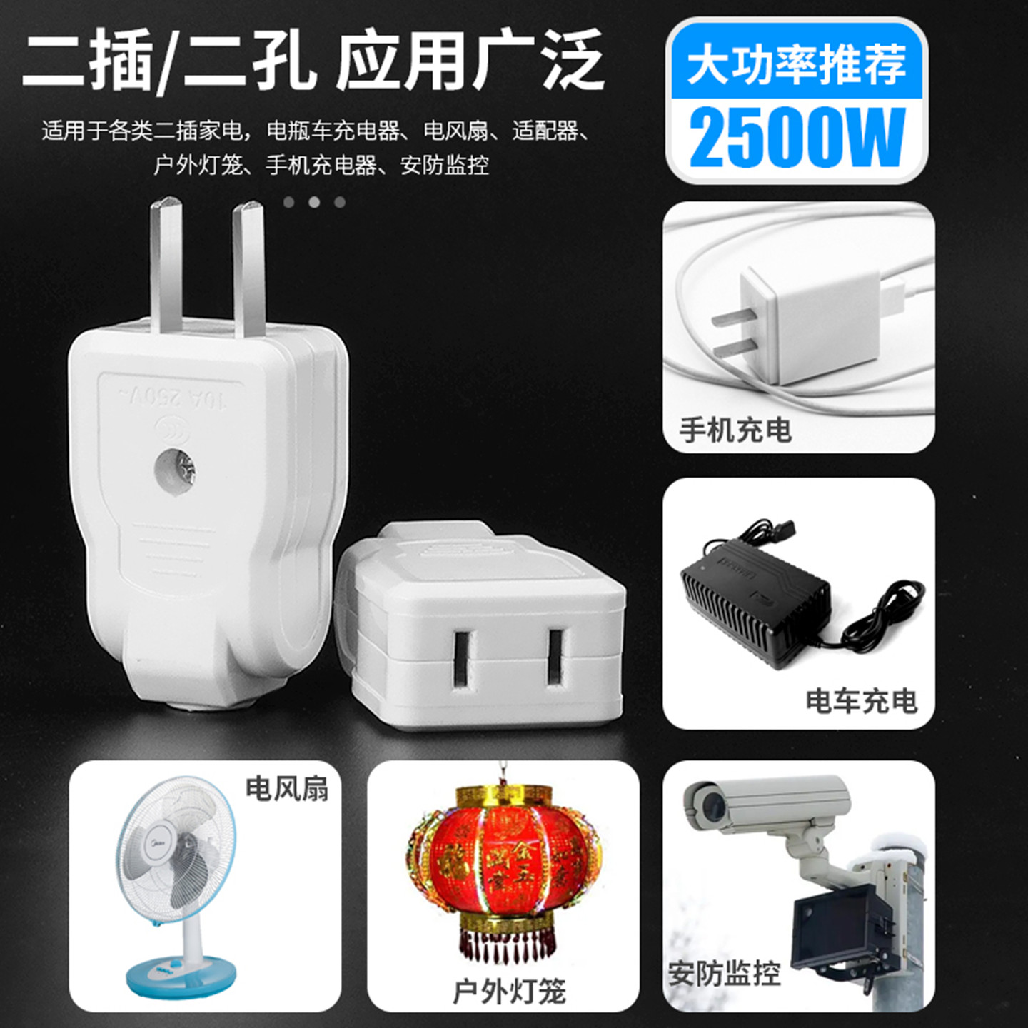 纯铜对接二脚母插头安防监控电源箱2孔母插10A公母插座多功能接头